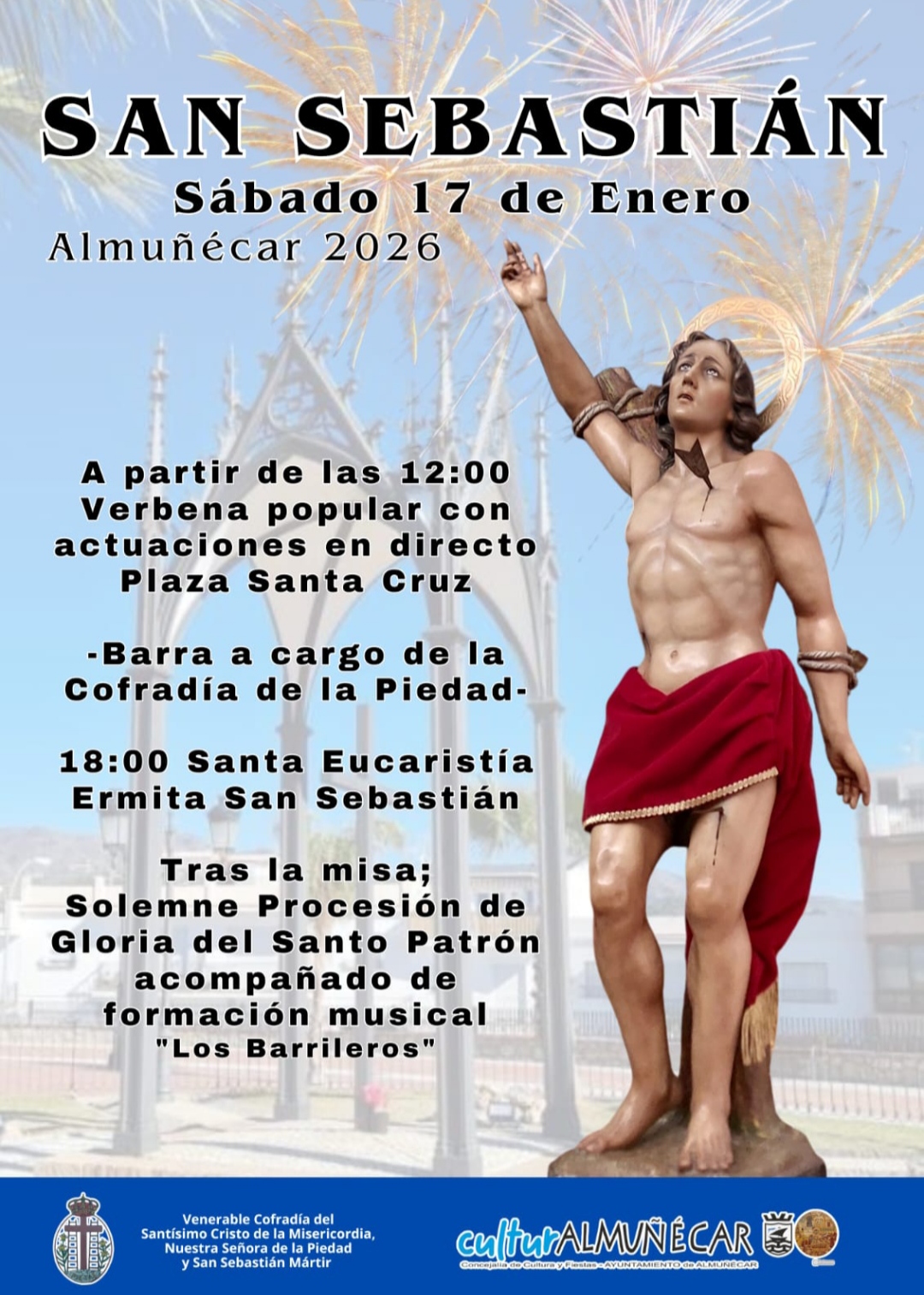 Habrá verbena popular, actuaciones en directo y barra de comida tradicional en la plaza Santa Cruz, además de la misa y posterior procesión, acompañada por la formación musical Los Barrileros