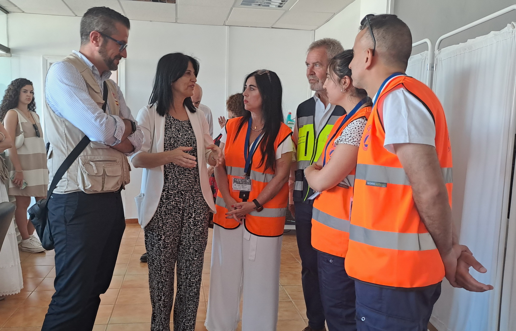 Ambos han recorrido igualmente las dependencias destinadas a la atención de los viajeros tales como el módulo de atención social, financiado por el Estado, que está formado por cuatro trabajadores sociales y cuatro intérpretes de francés y árabe además de un coordinador, cuyas funciones fundamentales consisten en tramitar y solventar problemas de carácter social, gestión de embarques y atención a viajeros, así como colaboración en calidad de intérpretes en asistencias sanitarias, sociales, y cuantas demandas de apoyo sean solicitadas por el resto de los organismos intervinientes en la OPE.