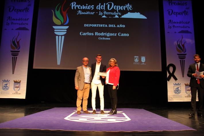 El ciclista sexitano, Carlos Rodríguez Cano fue homenajeado y galardonado en la Gala del Deporte de Almuñécar 2018 como “Deportista del año” y por ello además recibió una de las ovaciones más destacadas del público que así lo corroboraron.