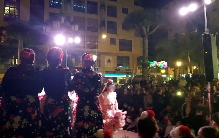 La fiesta de navidad en Almuñécar se ha trasladado hasta la plaza del pescador, donde el espectáculo Navidad Flamenca con "Niño Carmelo y María la Canastera" y su grupo de baile han hecho las delicias de los asistentes.