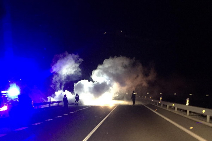 El accidente ha provocado que los vehÃculos que circulaban en ambas direcciones tuvieran que quedar parados durante casi media hora hasta que se restableció la circulación pasadas las 11 de la noche, una vez controlado el fuego que calcinó el coche por completo.