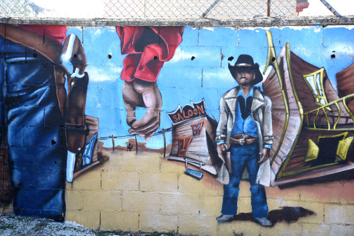 La temática de los “grafitis†era libre, y entre las doce pinturas que ahora decoran uno de los muros de la Ciudad Deportiva Diputación de Armilla, abundan los dibujos de tipo naturalista, que muestran diversos rostros, una escena del viejo oeste y un unicornio. También hay varios dibujos abstractos, caricaturas y las tÃpicas firmas de “grafiterosâ€, a gran tamaño y a todo color.
