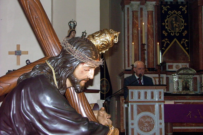El pregón de exaltación cuenta ya su VIII edición y para esta ocasión la junta de gobierno de la corporación que preside su actual hermano mayor, José Molina, habÃa designado a una persona bien curtida en los ambientes cofrades, el periodista José Manuel González Arquero, a quien los años confieren ya un amplio bagaje en ese peculiar arte que permite encumbrar con tintes poéticos el sentimiento que mueve a la fe en la veneración de imágenes religiosas, ya sean de gloria o de pasión. Desde luego ese arte que es “único†en sus variadas formas y maneras solo puede brotar desde lo más Ãntimo del corazón con el ánimo de hacer trasmitir sensaciones que solo se pueden vivir desde la fe. Solo asà se puede entender el significado del pregón y como tal quedó refrendado por los hermanos de hermandad y fieles en general que llegaron a abarrotar por completo el recinto eclesial.