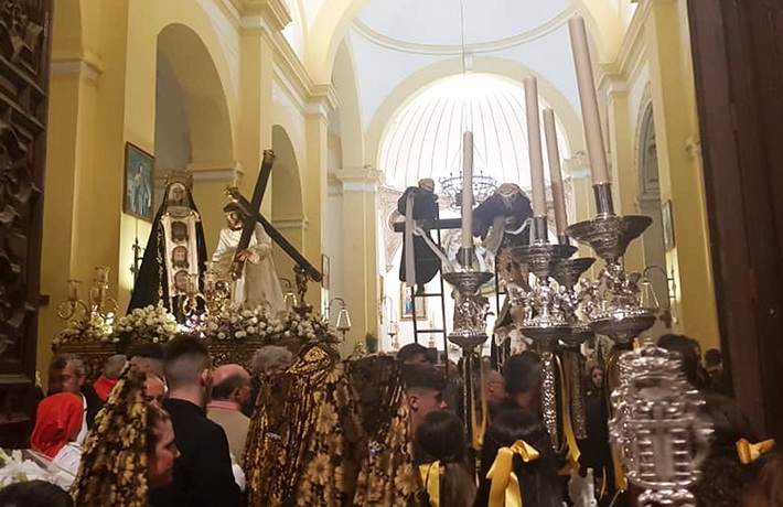 En la Parroquia de la Encarnación, los tres tronos, El Cristo del Perdón, El Descendimiento y Santa María del Alba, y el Silencio, se tuvieron que resignar a quedarse en la Iglesia porque justo cuando iban a salir comenzó a llover de forma incipiente, pero lo justo para decidir no salir y arriesgarse ante la amenaza de las fuertes lluvias que llegaron algo después de las 3 de la madrugada.