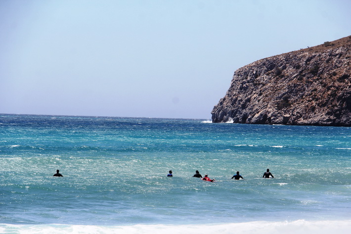 Ellos son los más beneficiados por el oleaje de suroeste, tal y como podemos ver en la playa de La Herradura o en Fuente Piedra, donde habitualmente, y en días así, se dan cita ataviados con sus monos de neopreno, tabla en mano, esperando la ola adecuada para surfearla.