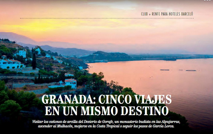 Igualmente, en el mismo número de la revista aparece también una foto panorámica de la Costa Tropical que muestra la costa de Salobreña desde el Barranco de En medio con Motril al fondo, con una breve pero interesante reseña: “Escápate a la Costa. A 40 minutos del centro de Granada se encuentra la Costa Tropical y alguna de las calas más bonitas del litoral andaluz como Salobreña, Cantarriján o Calahonda entre muchas otras. Pasa el día paseando por la playa y disfruta por la noche del ambiente inigualable de las noches granadinas”.