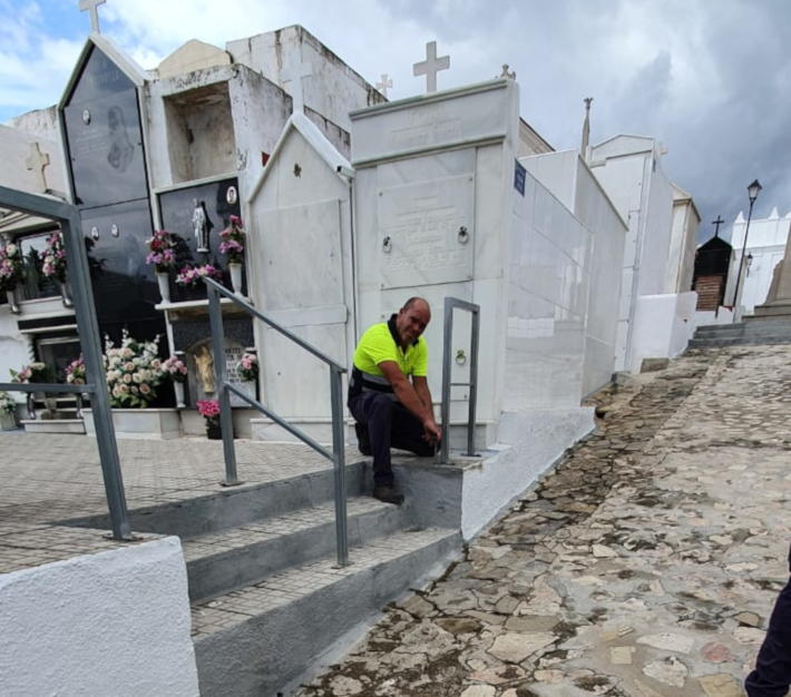 Para concluir con la mejora de la accesibilidad en distintos espacios, en las escaleras del cementerio también se han colocado nuevas barandillas para mejorar el tránsito entre las distintas zonas del campo santo.