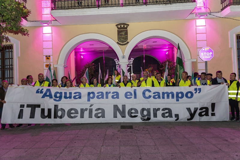 Los agricultores de Almuñécar y La Herradura se concentraron anoche en la plaza del Ayuntamiento sexitano, convocados por Agua para el Campo, para reivindicar el inicio urgente de las obras de canalizaciones del proyecto realizado por la Junta de AndalucÃa, que llevarÃa el agua del sistema Béznar-Rules desde la Etap de MolvÃzar a la cabecera de rÃo Verde.