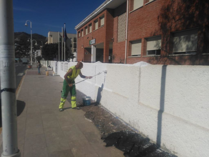 Por otro lado, esta semana han concluido las mejoras de los daños producidos en jardineras del Chorrillo con el pintado de la misma y su entorno. Desde la Tenencia de Alcaldía de también se lleva a cabo estos días el pintado del vallado el IES de La Herradura junto al paseo marítimo y fachada del centro.