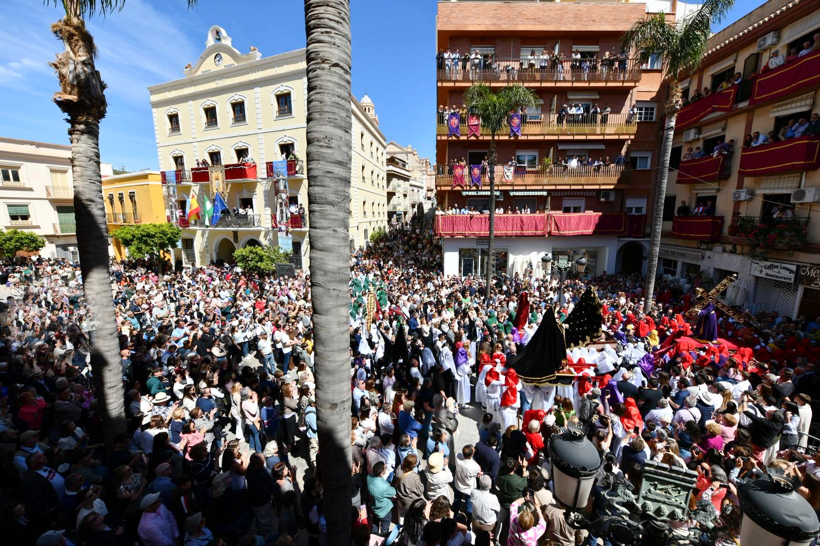 Reconoce la tradición cofrade con la escultura de un penitente en bronce, obra de David Sánchez Cruz, en cuya fundición se han integrado las medallas de las hermandades de Almuñécar y La Herradura.