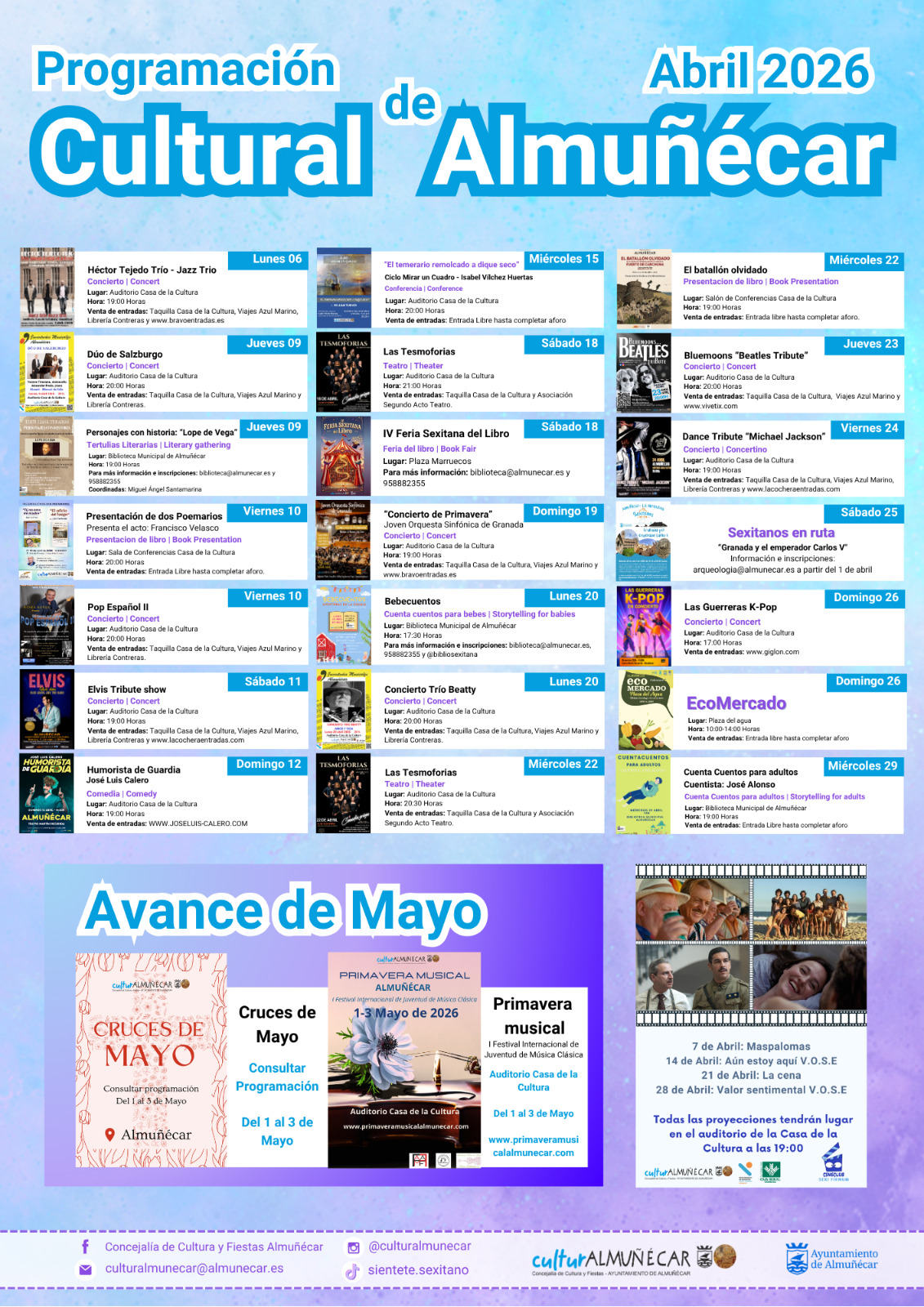 La programación impulsada por la concejalÃa de Cultura incluye música en directo, espectáculos, cine en versión original y actividades para todos los públicos a lo largo de este mes.