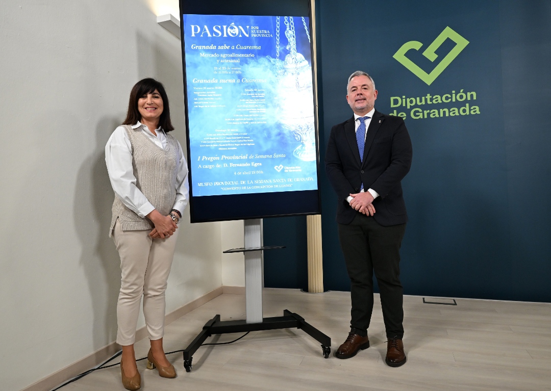 El portavoz del equipo de Gobierno de la Diputación de Granada, Nicolás Navarro, y la diputada de Cultura y Educación, Pilar Caracuel, han presentado la programación de actividades que se desarrollarán en Cuaresma, del 21 de marzo al 4 de abril, en el Convento de la Concepción de Guadix, edificio adquirido por la institución provincial el pasado año para convertirlo en el futuro Museo Provincial de la Semana Santa. El evento, bajo el nombre ‘Pasión por nuestra provincia’, busca dotar de vida este espacio durante la Cuaresma, anticipando el uso cofrade que tendrá el recinto una vez inaugurado oficialmente, con actividades gastronómicas denominadas ‘Granada sabe a Cuaresma’, actuaciones de coros y bandas llamadas ‘Granada suena a Cuaresma’ y con el I Pregón Provincial de Semana Santa como colofón.