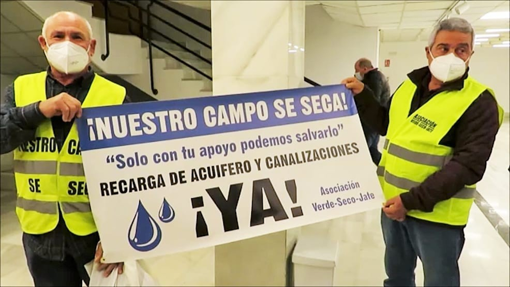José Luis Ruiz Olivares, presidente de la Asociación Verde-Seco-Jate, y Jesús Ruiz Peralta, exigieron anoche al vicepresidente de la Junta de Andalucía, Juan Marín, la recarga urgente del acuífero de río Verde.