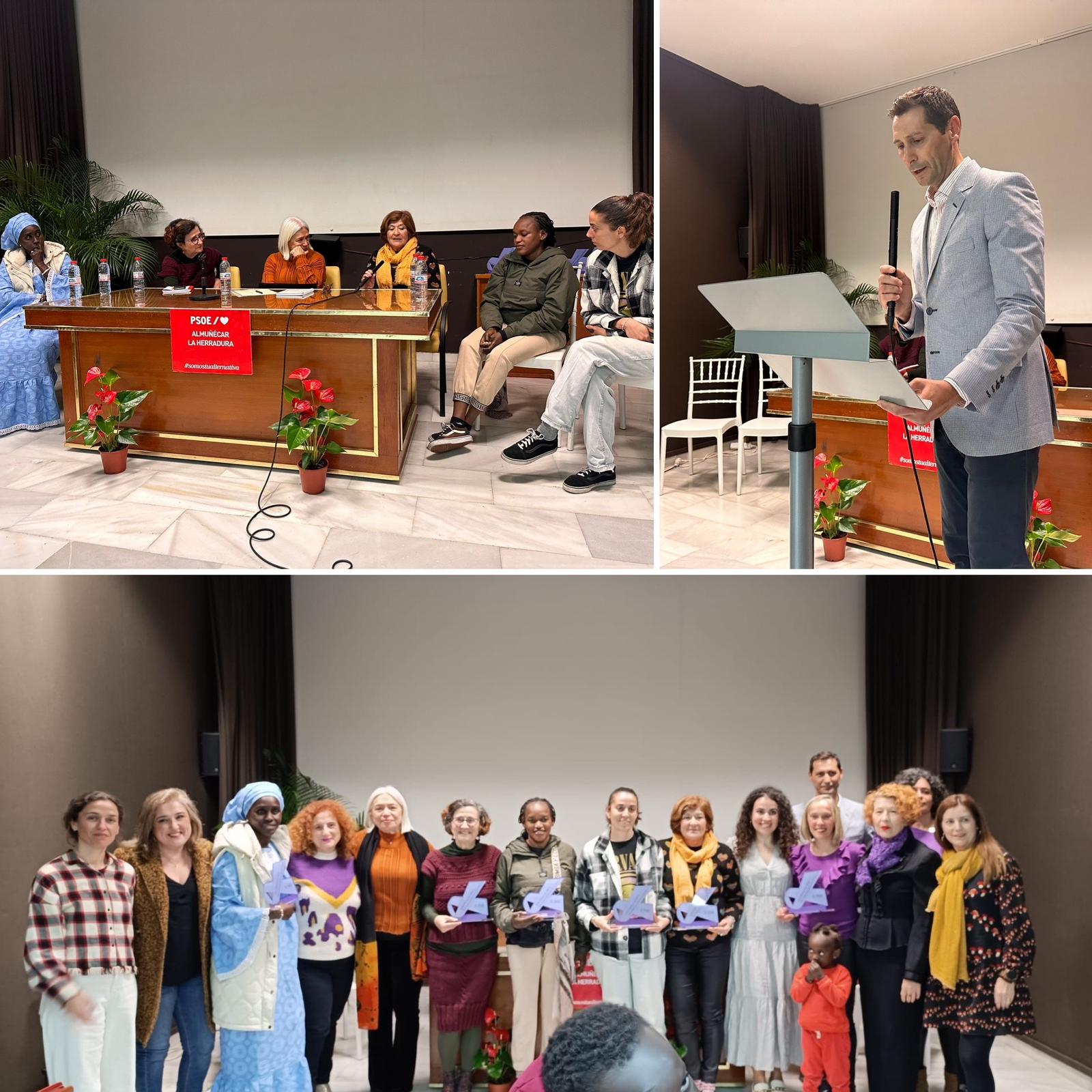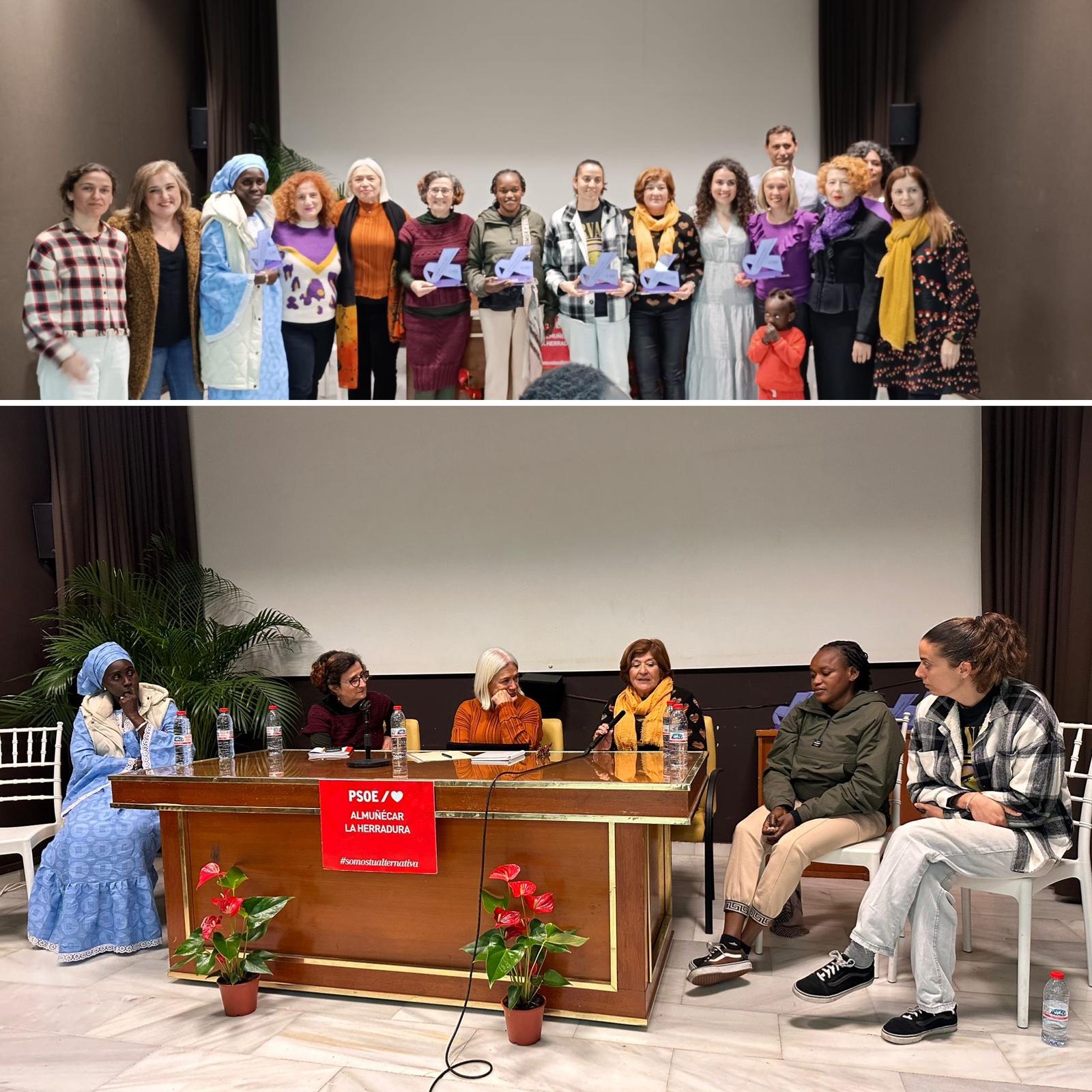 El PSOE de Almuñécar celebró ayer tarde, 7 de marzo, en la Casa de la Cultura de Almuñécar, un coloquio de mujeres con motivo del Día Internacional de la Mujer. Durante el acto, se pudieron escuchar testimonios muy ilustrativos sobre las brechas y dificultades que afrontan en su día a día las mujeres en materia de cuidados, conciliación familiar o inserción laboral.