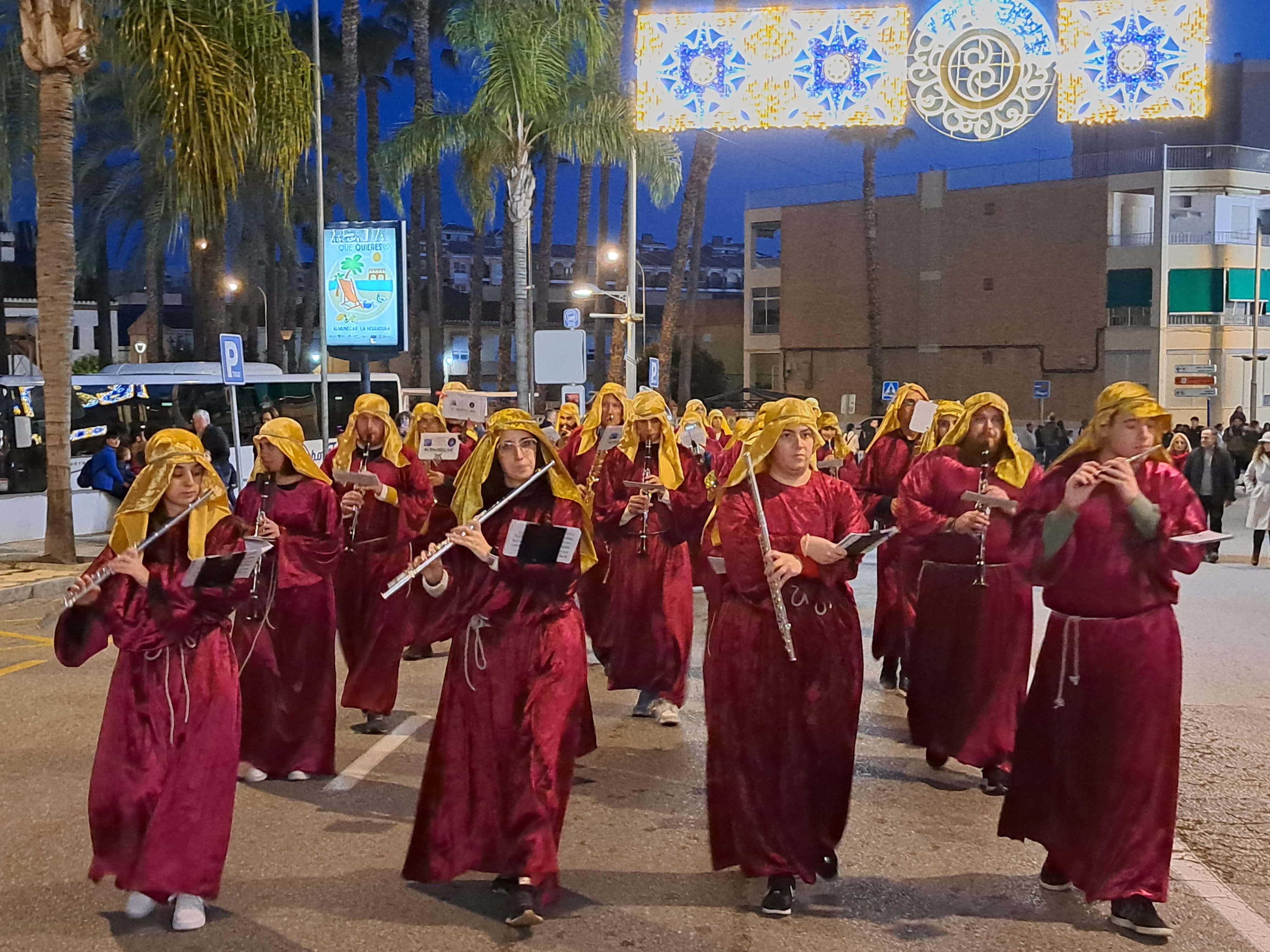 Al Cortejo Real, le ha acompañado la Banda Municipal de Música de Almuñécar, al son de villancicos, por todos conocidos, que han arrancado los cánticos de niños y mayores a su paso.