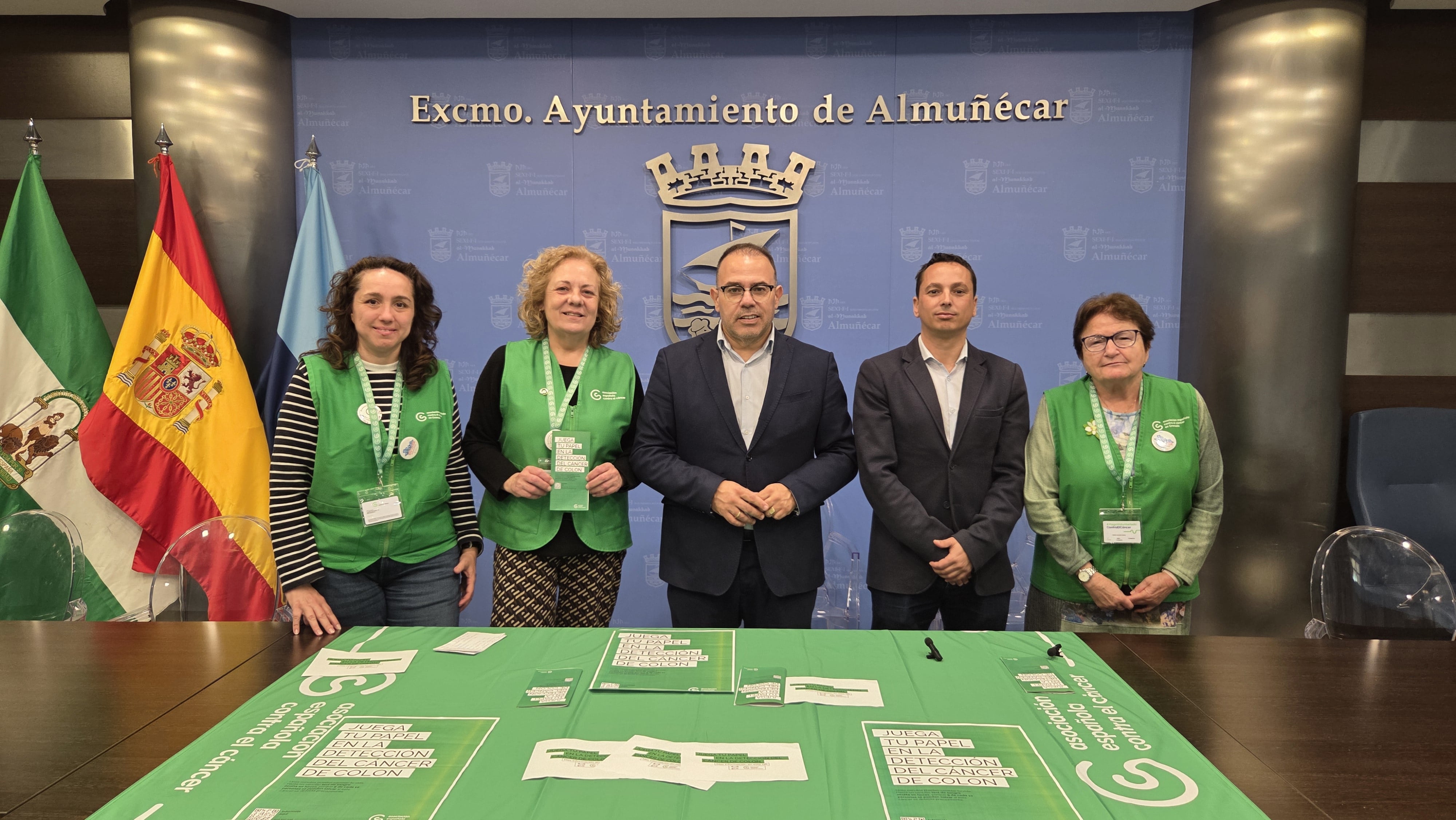 El alcalde de Almuñécar, Juanjo Ruiz Joya, y el concejal de Salud, Carlos Ferrón, han recibido a varios miembros de la Asociación Española Contra el Cáncer para mostrar su apoyo a la campaña del Día Mundial contra el Cáncer de Colon, que bajo el lema 'Juega tu Papel' pretende concienciar a la población de entre 50 y 69 años para que acuda a su centro de salud a realizar una prueba de sangre oculta en heces.