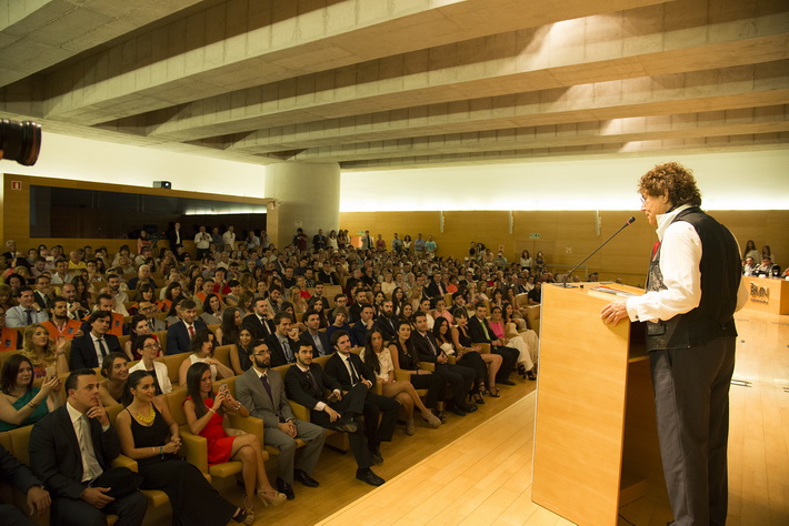 Y en último lugar, y bajo una atenta expectación, Jesús Quintero, ese "loco" que ha cautivado al público y por supuesto a los recién graduados, contando anécdotas de sus comienzos en la radio, allá por los años 70. Una reflexión a la que ha querido llegar para motivar a los nuevos periodistas, publicistas, comunicadores y marketinianos "el fracaso es para los buenos, de ellos es donde yo más he aprendido en mi profesión. Por tanto no tengáis miedo a tenerlos".