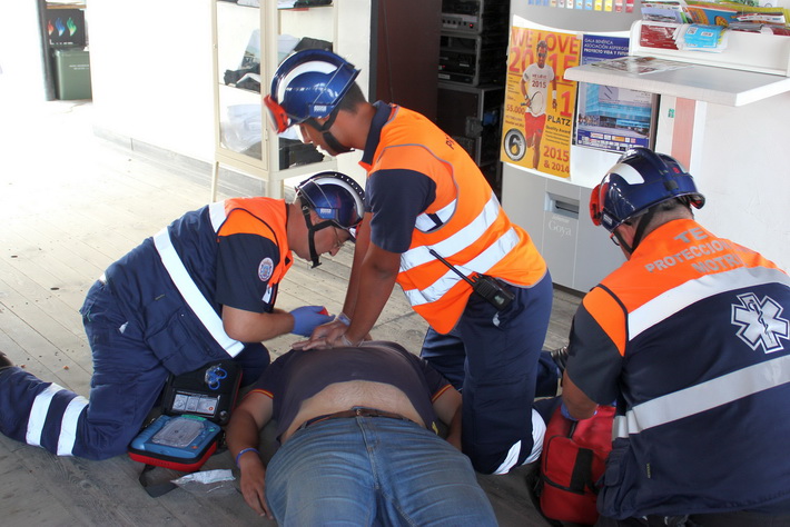 El equipo de Bomberos, Protección Civil, PolicÃa Local y Seguridad en playas se coordinan en una emergencia simulada para mejorar en su trabajo a la hora de atender una emergencia