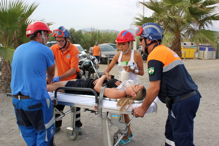 Bomberos, por su parte, se han encargado de estabilizar la zona mientras que los especialistas médicos, de Protección Civil y Seguridad en playas, han desempeñado sus labores sanitarias con los heridos.