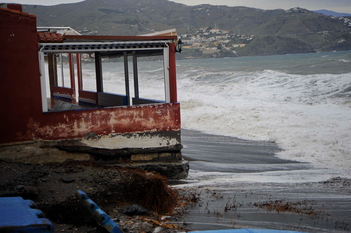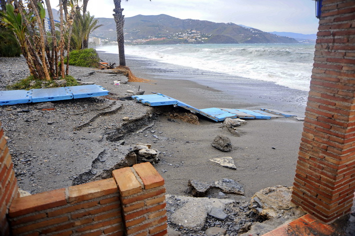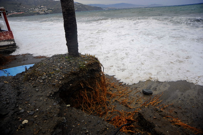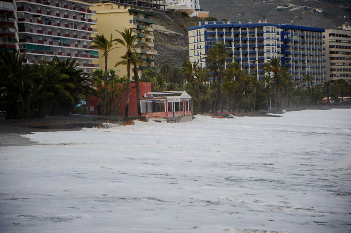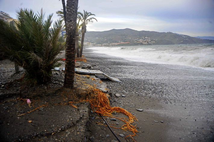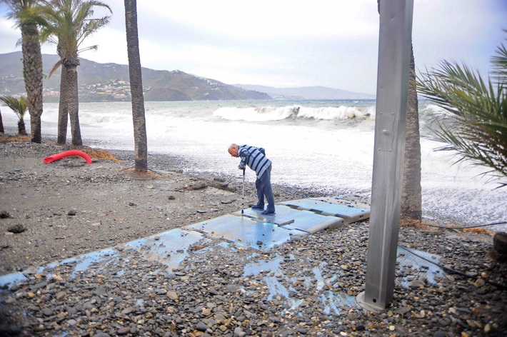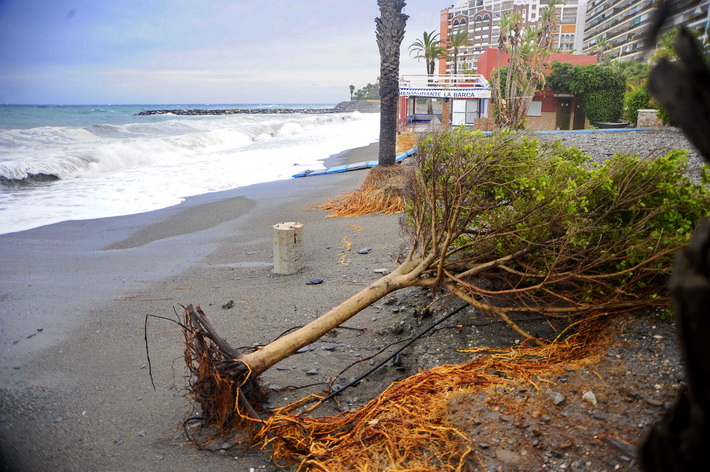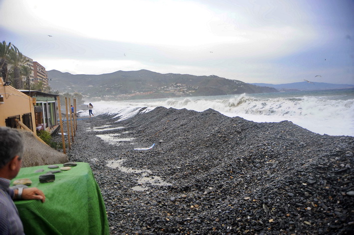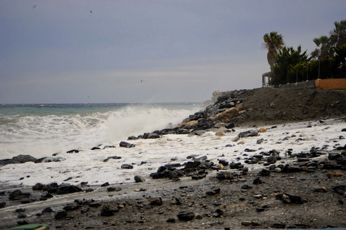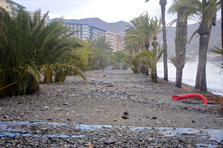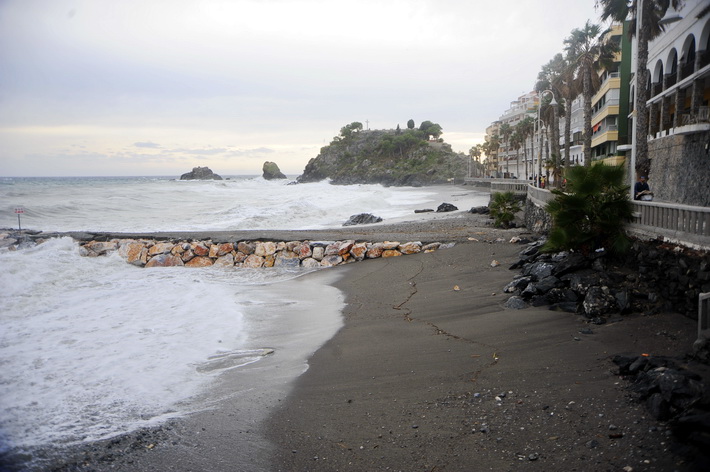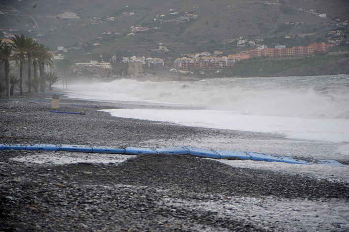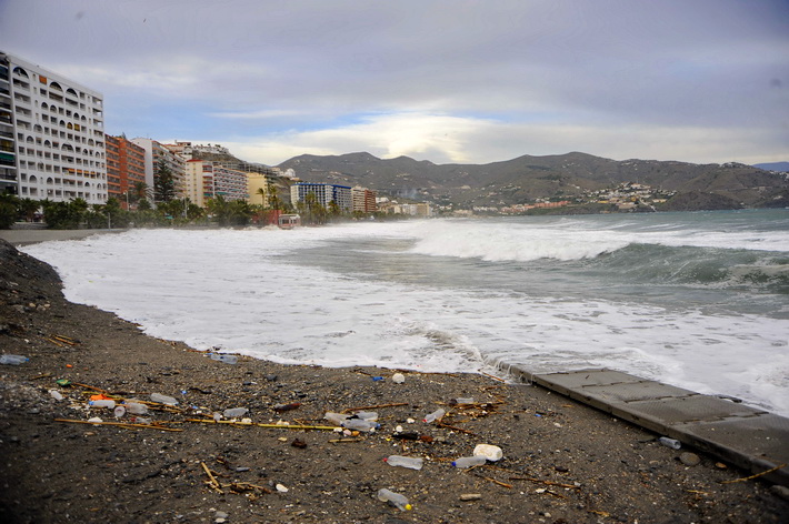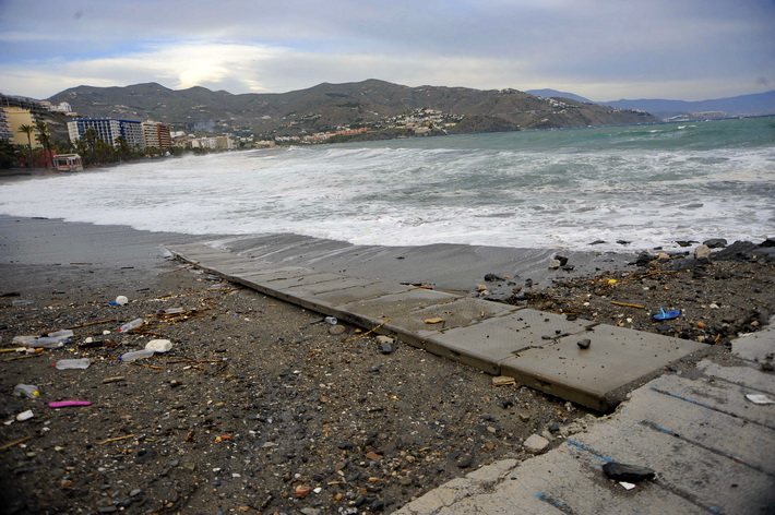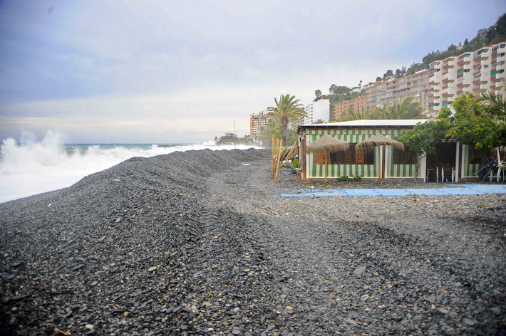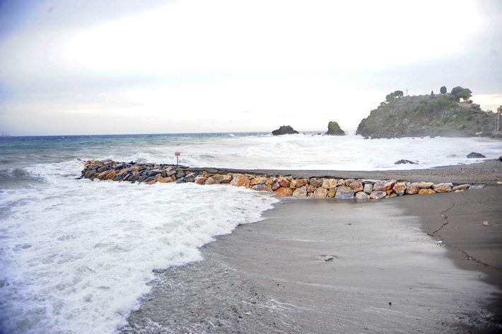 El fuerte temporal de levante que azota este domingo la Costa Tropical se ha dejado sentir en varios puntos de la costa de Almuñécar y, muy especialmente, en las playas que están orientadas al este como la Velilla, Marina del Este y Cotobro.