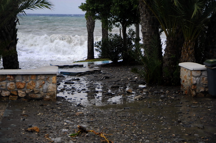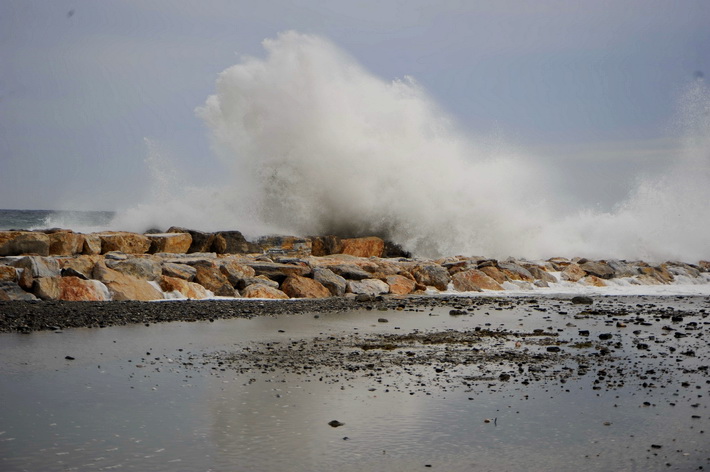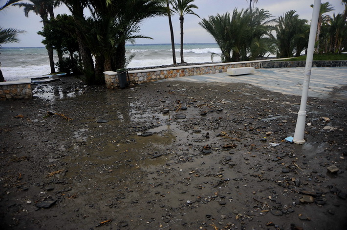 En el puerto deportivo de Marina del Este, orientado también al este, el oleaje desbordaba las escolleras de protección y los marineros, los que estaban de guardia y otros que fueron requeridos en ayuda, tuvieron que emplearse a fondo para realizar cambios o reforzar los amares de las embarcaciones atracadas, ante la intensidad de las olas.