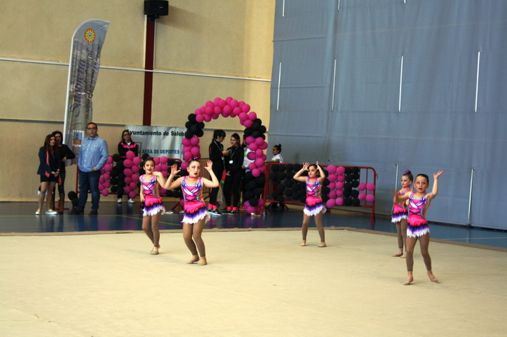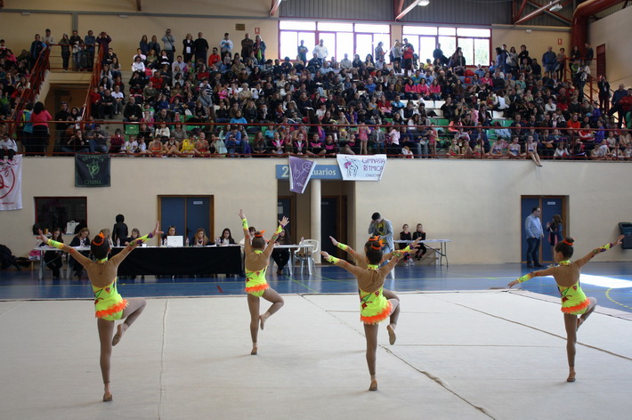 Las modalidades participantes han sido las de aro y mazas, cinta y pelota y manos libres, junto a una categoría infantil de solo aros. La actividad ha comenzado con la actuación de conjuntos, integrados por cinco o seis gimnastas, y posteriormente han tenido lugar las intervenciones individuales y por equipos.