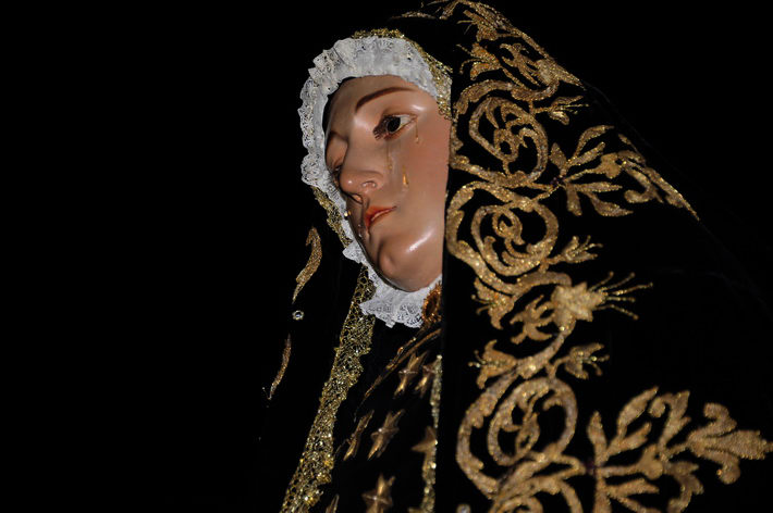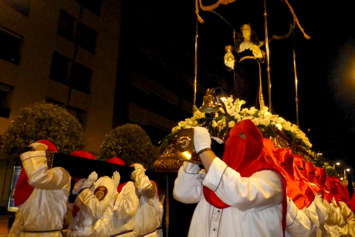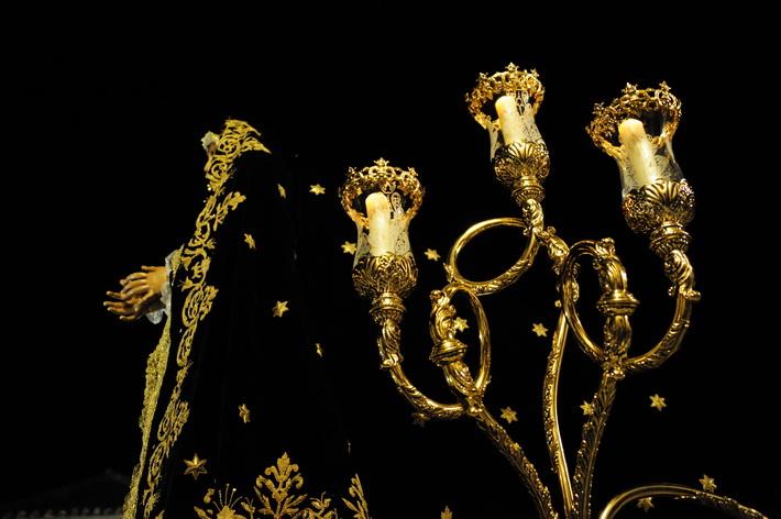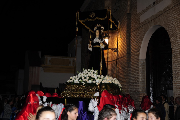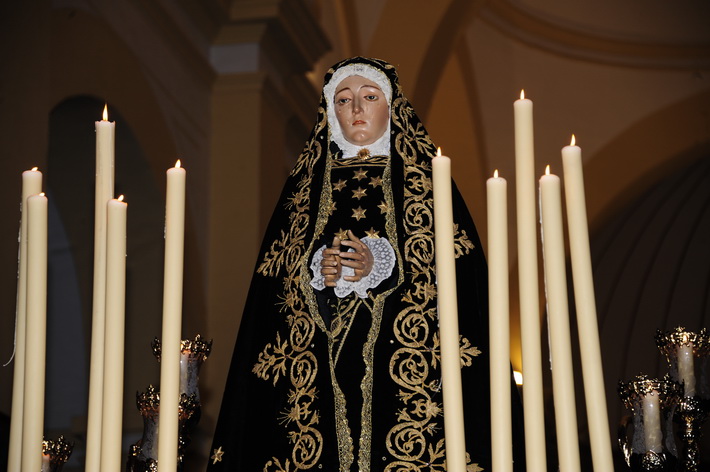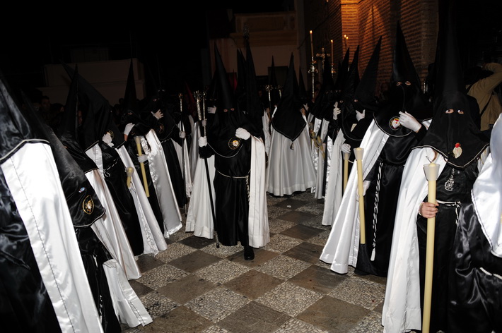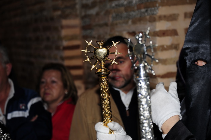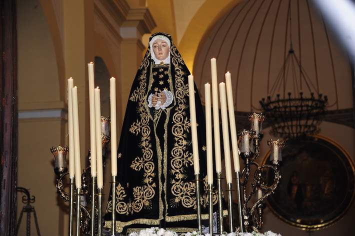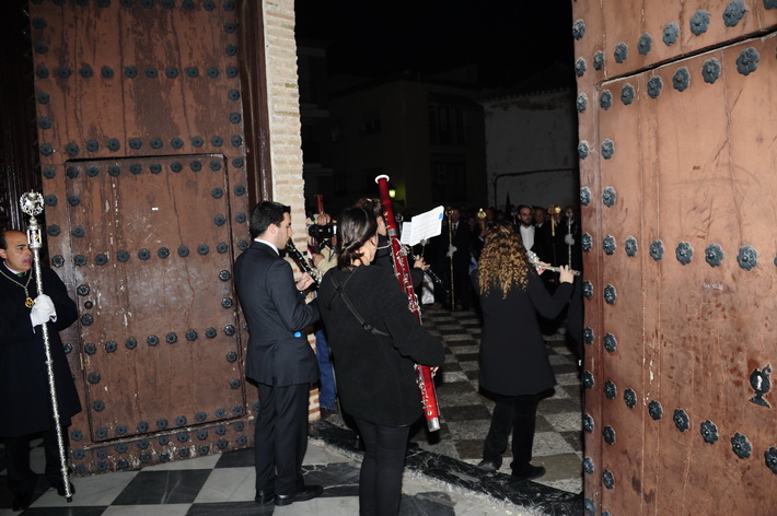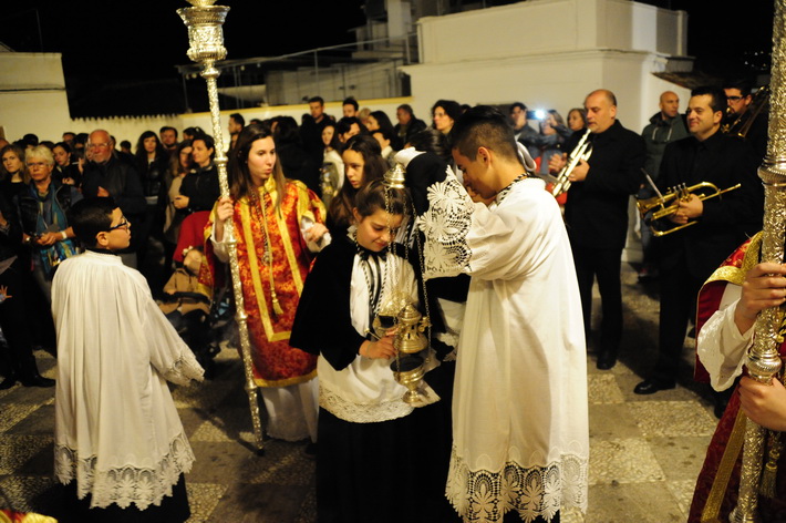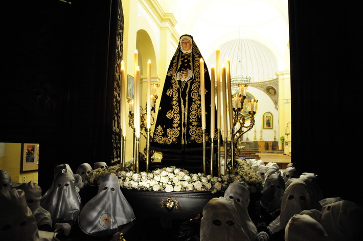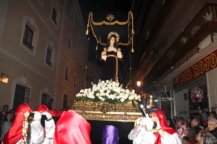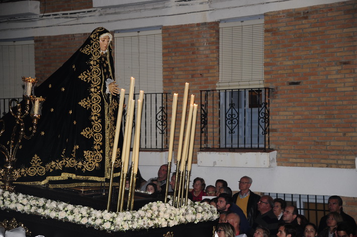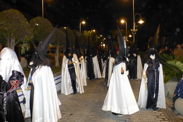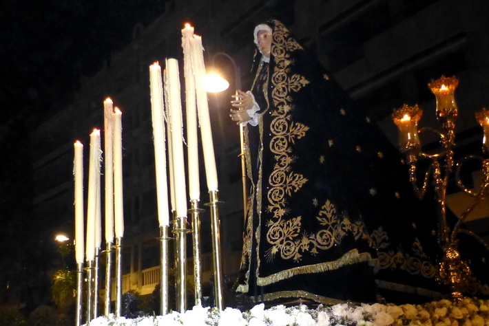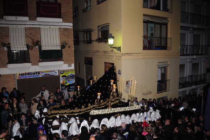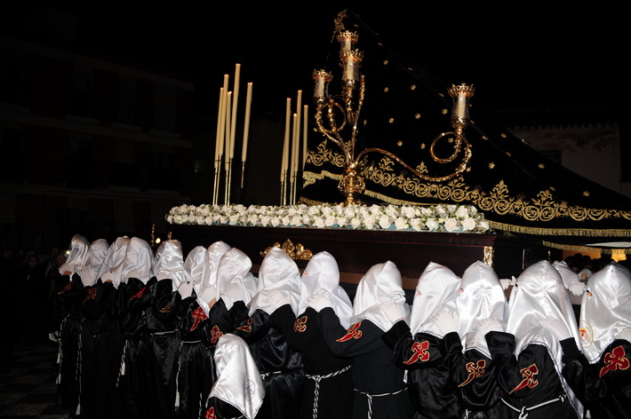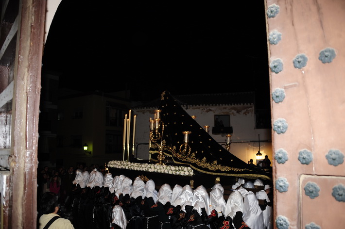 El recogimiento que transmitía la procesión que abrí la Vera Cruz portada a costal, y el Sepulcro a los sones de la música sacra del grupo “Capilla tres caídas”, de Granada, aumentaba aún más si cabe la solemnidad y puesta en escena en las calles de Almuñécar. A ello se sumaban las cofradías de Cristo del Perdón y María Santísima del Consuelo y Nuestra Señora Virgen de los Dolores. Ésta portada pro los horquilleros mandados por Francisco Alba y a los sones del grupo Andona Brass.