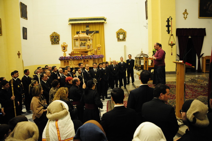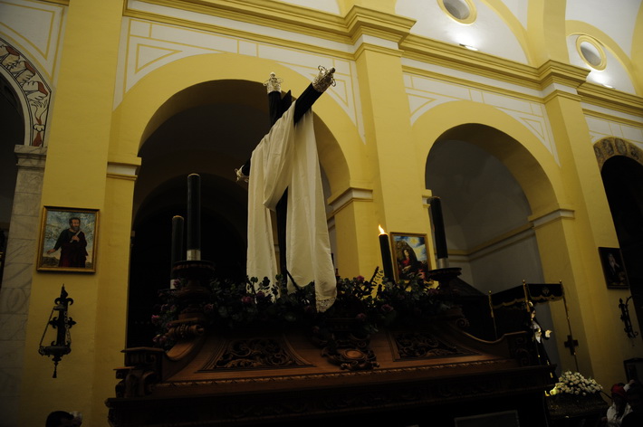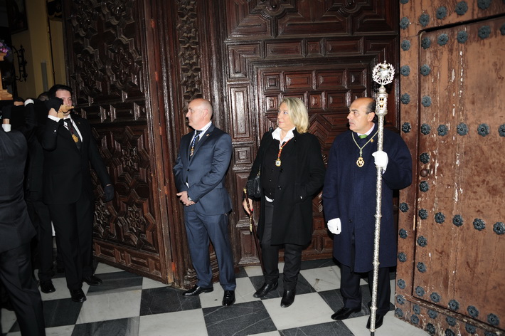 El cortejo procesional presidido por el cura párroco, Vicente Guerrero, partió desde la iglesia de la Encarnación con un amplio protocolo de representación de las cofradías y hermandades de la Semana Santa sexitana, encabezada por su hermano mayor, Javier Zarcos a la que se sumaron las autoridades, encabezada por la alcaldesa, Trinidad Herrera, junto con los jefes locales de Guardia Civil y Policía Local.