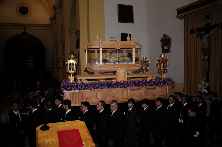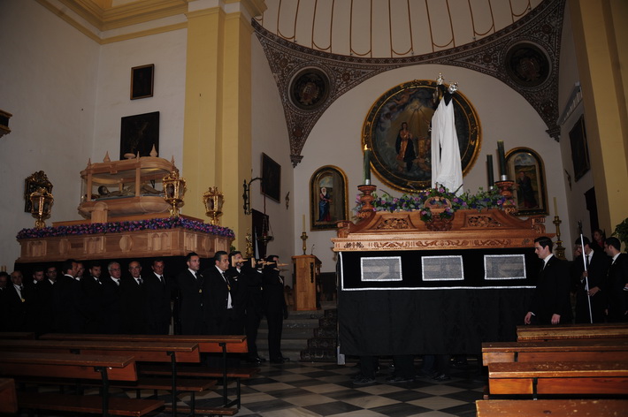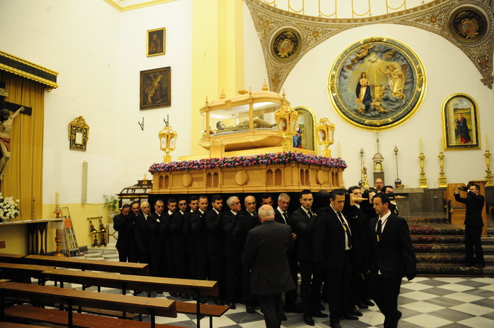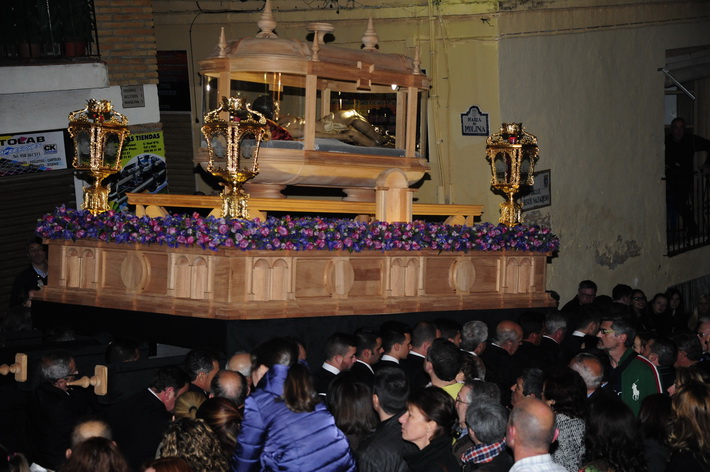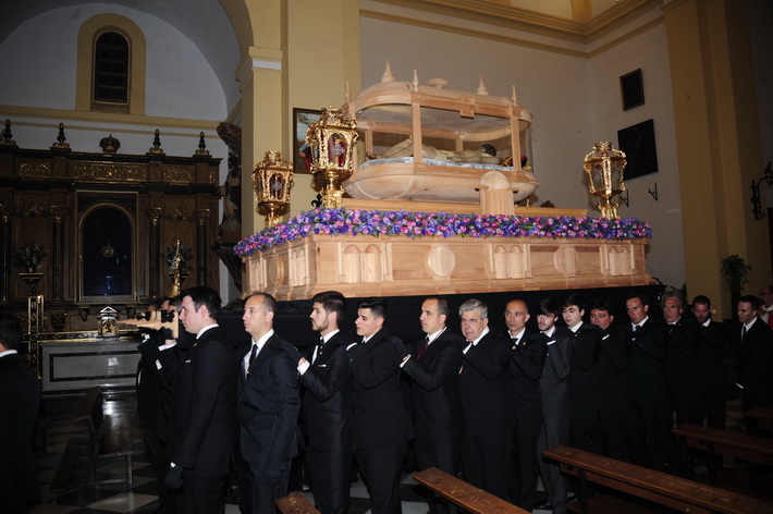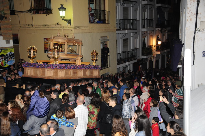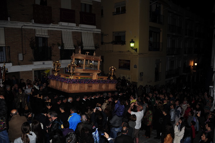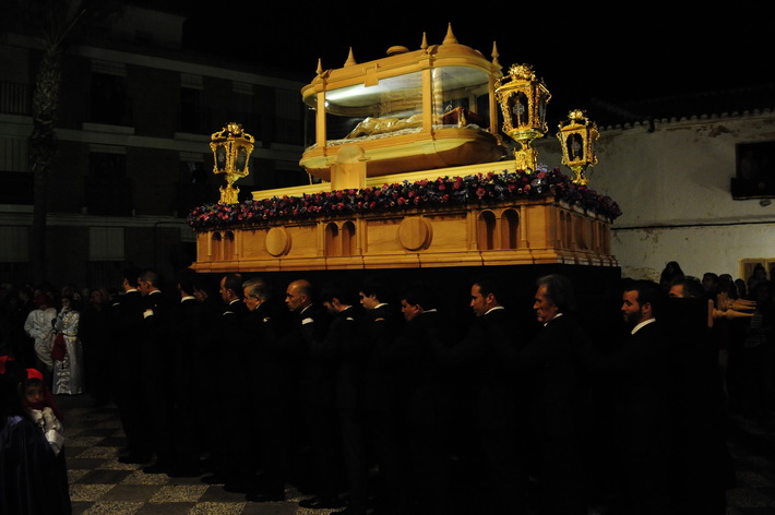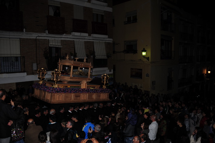 Una noche solemne donde destacada el nuevo trono del Cristo yacente, aun sin terminar, pero donde ya destaca el diseño que se ha hecho realidad tras el boceto del artista granadino, Álvaro Abril, aunque posteriormente ha sido rectificado para el paso adecuado por las calles sexitanas por el tallista, Manuel Oliva.