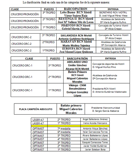 A la entrega asistieron todas autoridades de cada uno de los municipios y finalmente el evento fue clausurado con las palabras del Presidente de la Mancomunidad de Municipios D. Sergio García Alabarce y el Presidente del Real Club Náutico de Motril D. Antonio Gutiérrez Maldonado emplazándolo para una nueva edición en el año 2017.
