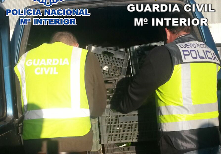 Agentes de la PolicÃa Nacional y de la Guardia Civil han culminado una operación conjunta en la que han desarticulado una red criminal dedicada a la comisión de robos de productos hortofrutÃcolas en explotaciones agrÃcolas de las provincias de Málaga, Granada y AlmerÃa. En el operativo han sido detenidas seis personas – seis hombres de nacionalidades española (3) y rumana (3), con edades comprendidas entre los 53 y 20 años- por su presunta implicación en 24 robos y hurtos de más de 26.500 kilos de aguacates, mangos, pimientos, berenjenas, calabacines y chirimoyas. Además se han recuperado 783 kilos de calabacines sustraÃdos en el poniente almeriense. Se han intervenido tres furgonetas utilizadas por los arrestados para cometer los ilÃcitos y 3.330 euros en efectivo.