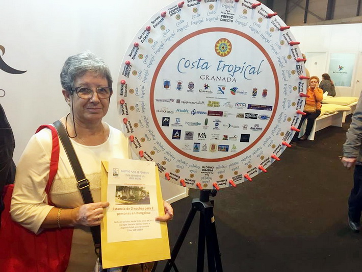 Establecimientos turísticos y hoteleros han vuelto a donar regalos, que los visitantes de FITUR han podido conseguir participando en una “ruleta de la suerte” en la que se han hecho con 14 bonos regalo de estancias en hoteles, campings, apartamentos turísticos y alojamientos rurales de Costa Tropical y más de 300 premios sorpresa con bolsas de playa, gafas de sol, frutas tropicales, mermeladas artesanales de frutos tropicales, tarros de Azúcar de caña, de Miel de caña, Ron de la Costa tropical y otros muchos artículos.