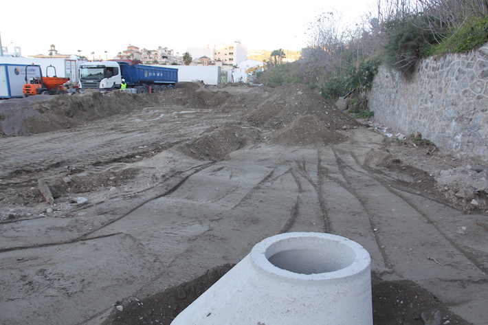 Con la instalación del primer tramo de tubería que desagüe a río Verde, en la zona del aparcamiento de camiones en situado en el P 4 de Almuñécar, han arrancado las obras que tienen como finalidad evitar las inundaciones en el barrio sexitano de La Paloma.