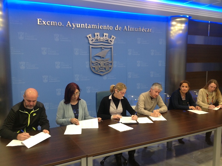 La concejala de Juventud, Formación y Empleo del Ayuntamiento de Almuñécar, María del Mar Medina, en representación de la alcaldesa, Trinidad Herrera, ha sido la encargada de firmar el convenio de colaboración entre el Consistorio sexitano y las academias de idiomas de Almuñécar y La Herradura: Natalia Hernández (Academia El Mar de La Herradura), Kelly Turner (Academia Dígame), Jimmy Whale (Academia Inter), María Teresa Ippólito Ruiz (Centro Fénix) y Francisco Cervilla Barbero (Academia MrC), para desarrollar diversos cursos de idiomas tales como Inglés B1, B2, Alemán Básico, Francés e Inglés Turístico, a través de grupos de 15 personas con preferencia a personas desempleadas del municipio.