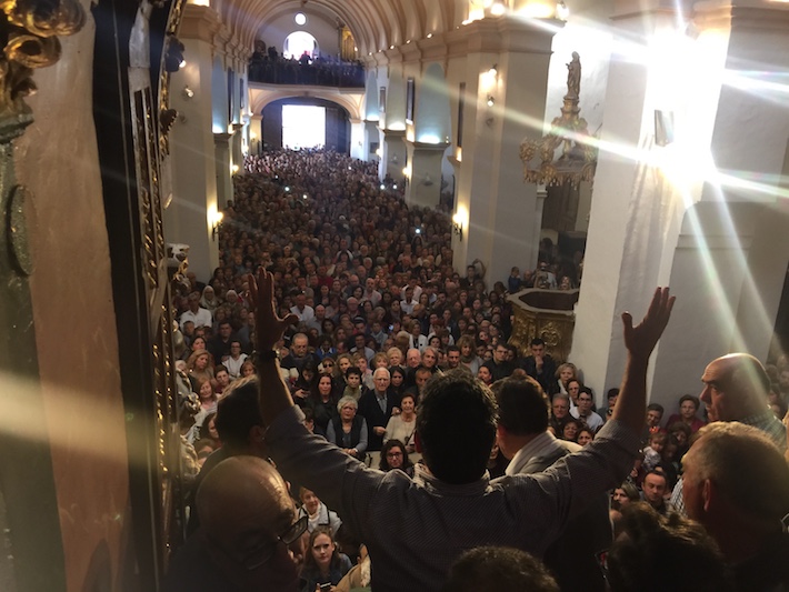 Con tiempo soleado y temperatura agradable de 20 grados en el exterior, la iglesia ha vuelto a quedar totalmente abarrotada, además de los vecinos, de personas llegadas desde numerosos rincones de la comarca alpujarreña y del resto de la provincia, todo con objeto de venerar a su Cristo.
