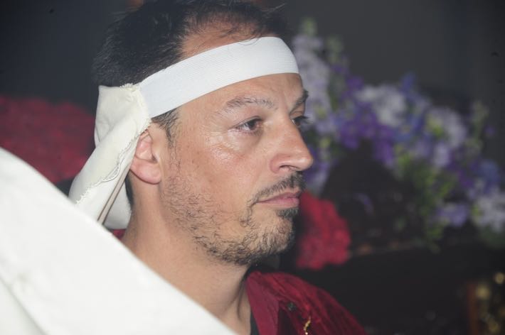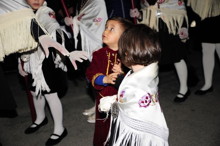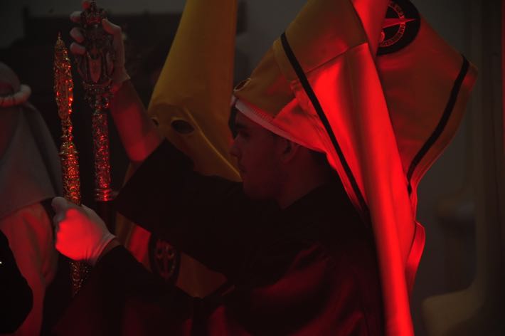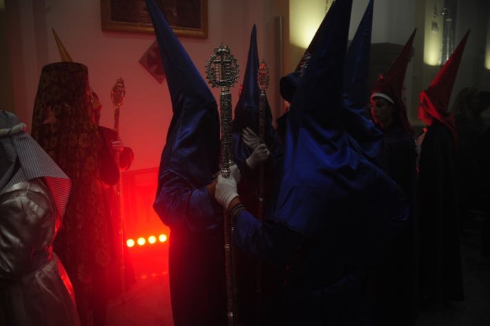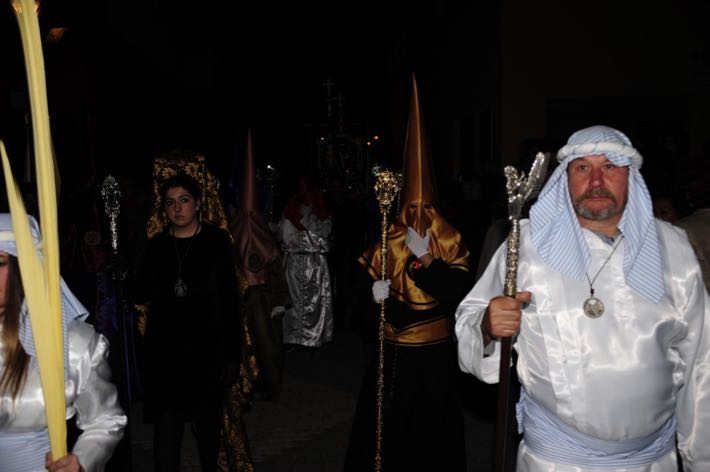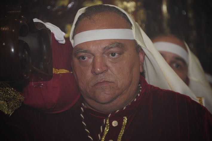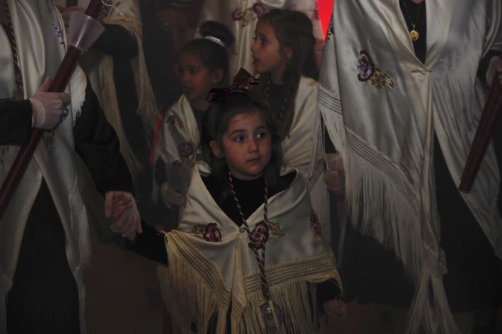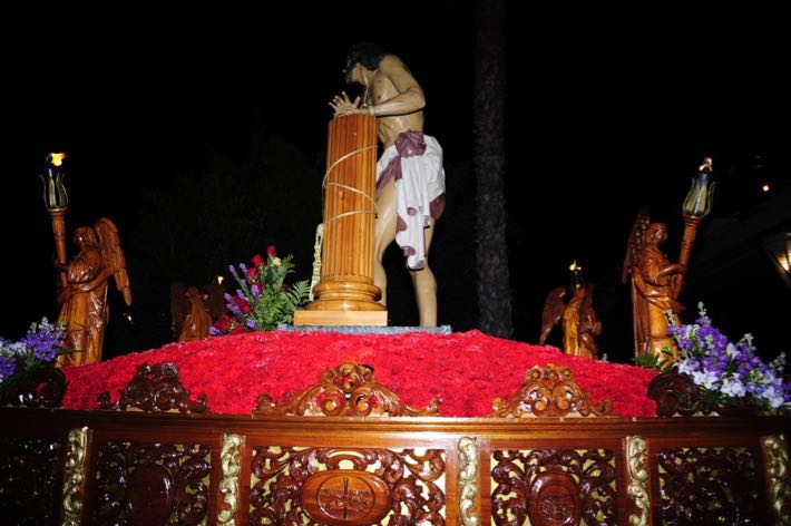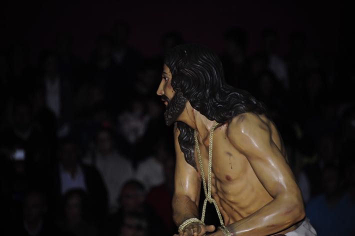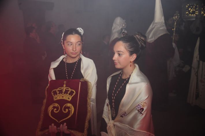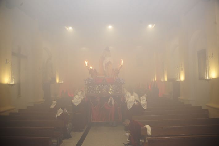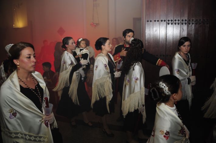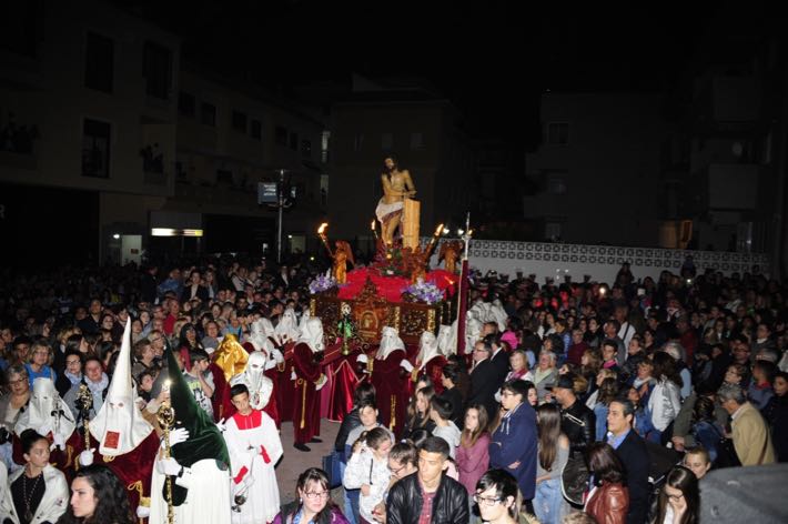 Como ya viene sucediendo desde hace un par de años, la bailaora Paola Almodovar lo recibe a las puertas del templo bailando a la luz de las antorchas, mientras suenan las saetas y el flamenco más religioso.