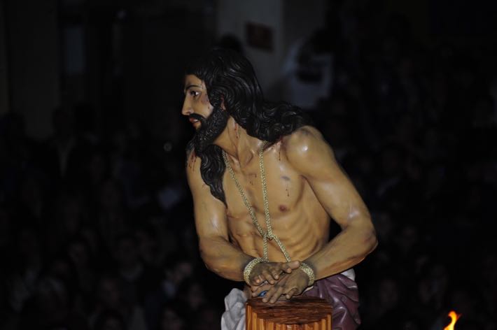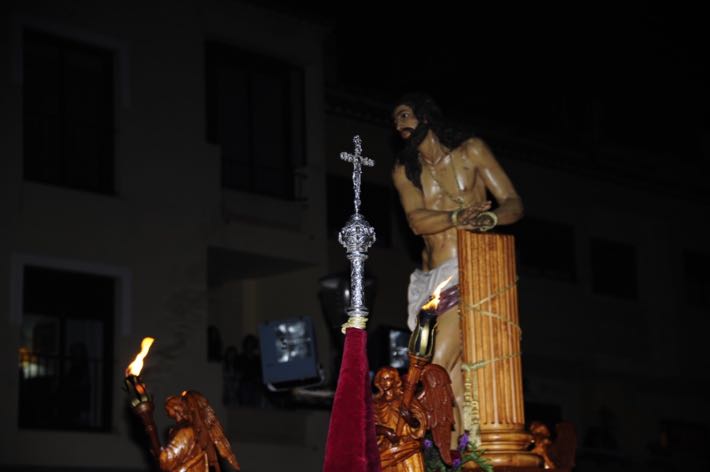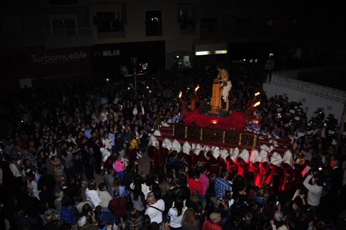 Como sucede cada Martes Santo, el "Cristo de los Gitanos" sale a las calles de Almuñécar entre la luz de las antorcha, el baile y el cante flamenco.