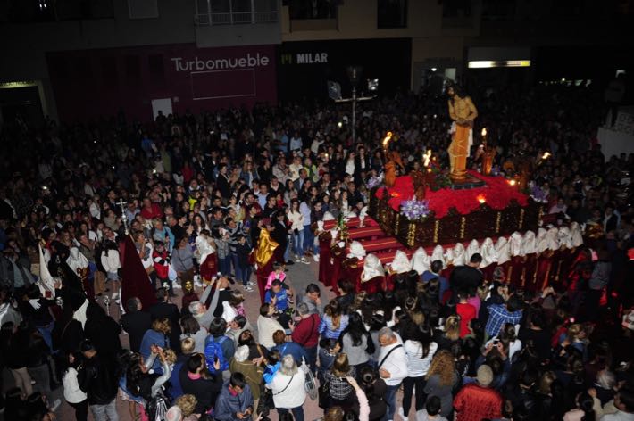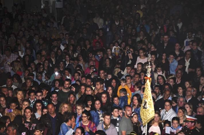 A su paso por las calles sexitanas, "el Moreno" es agasajado con pétalos de flores, el cantar de las saetas y los vivas de sus miles de seguidores.