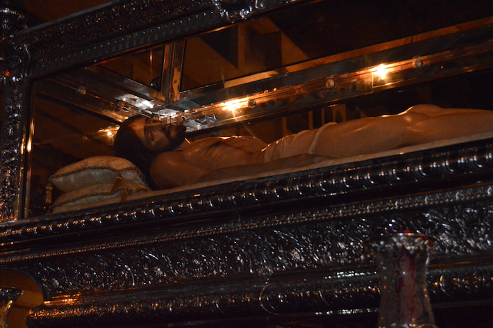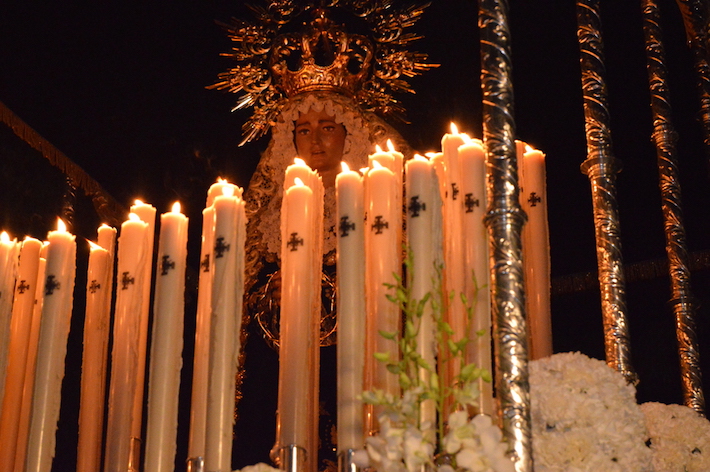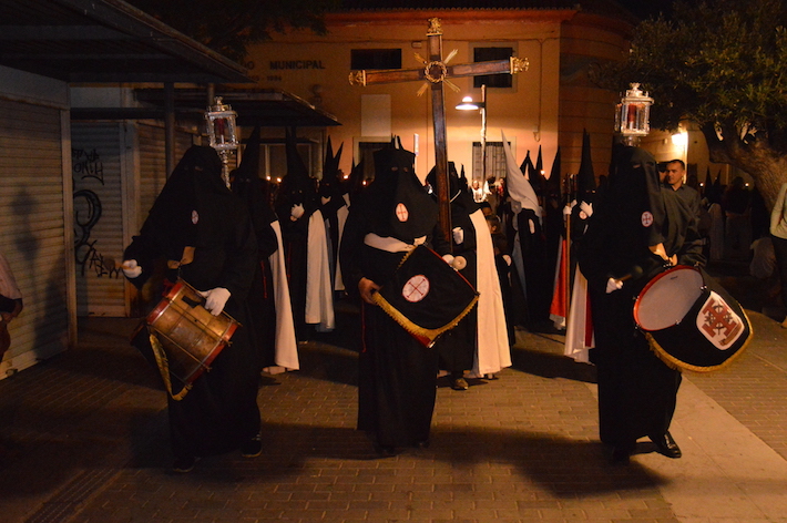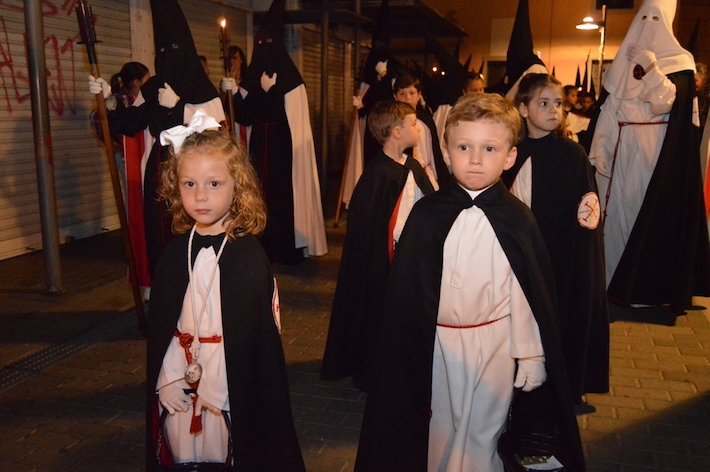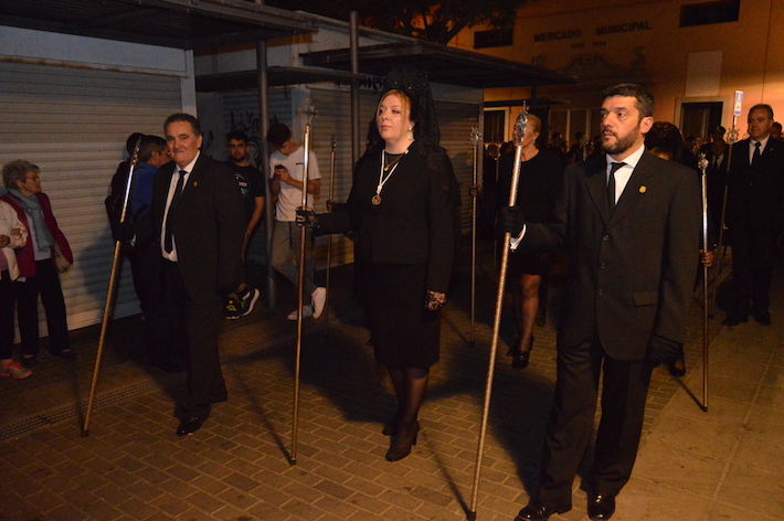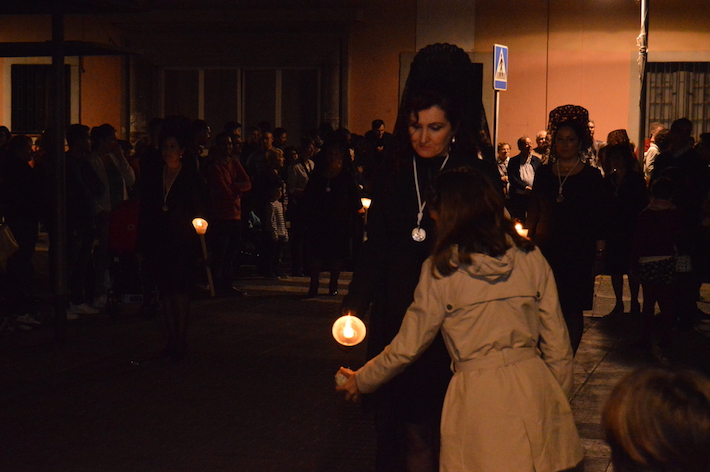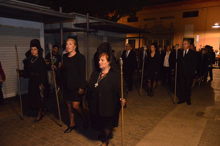 La noche del Viernes Santo de Motril se tiñó de luto para ver procesionar por las calles del centro al Santo Sepulcro y MarÃa SantÃsima de los Dolores, la única talla de la Virgen en Motril que tiene las manos entrelazadas, dándole un toque sevillano.