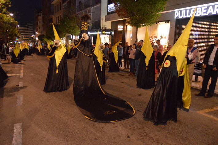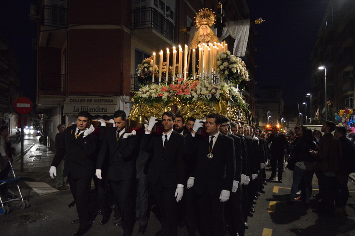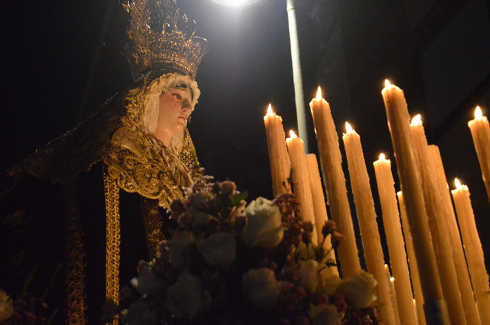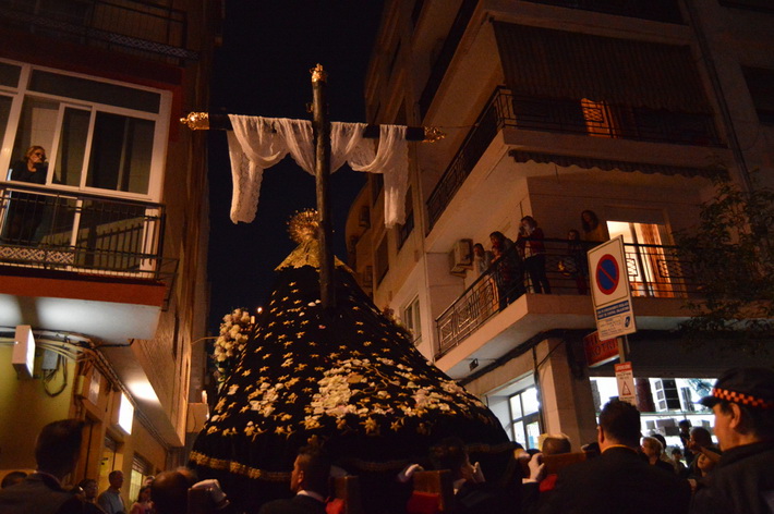 El paso de la Soledad, portado a lo malagueño, y con la cruz con el sudario sustituyendo al palio iluminó la noche con las estrellas bordadas de su manto para dar conclusión, a la falta de la salida procesional del Resucitado en la mañana del domingo de Pascua, a una Semana Santa en la que han podido concluir sin incidencias todas las estaciones de penitencia.