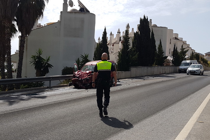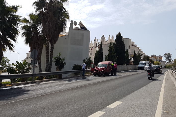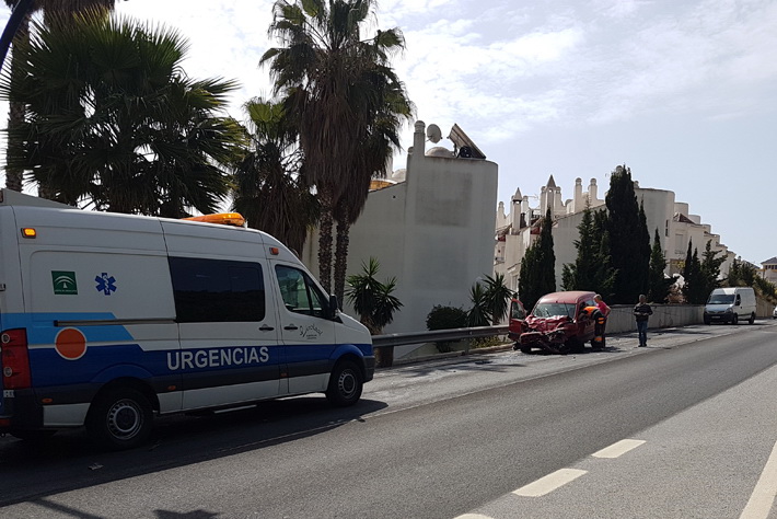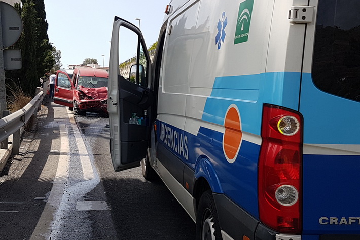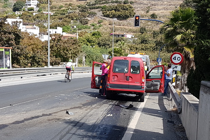 El aparatoso accidente múltiple ocurrido este medio día en la rotonda de Taramay - Almuñécar, se ha saldado con cinco vehículos implicados.