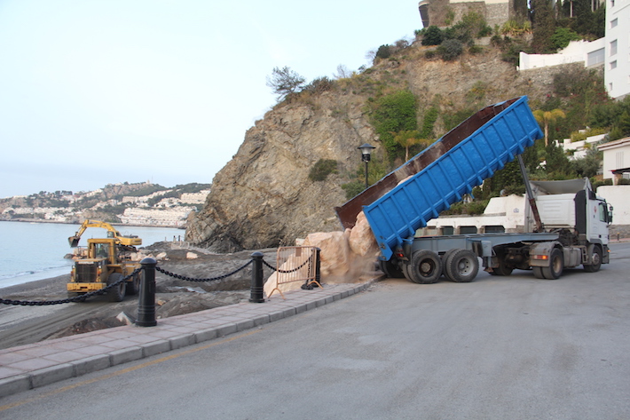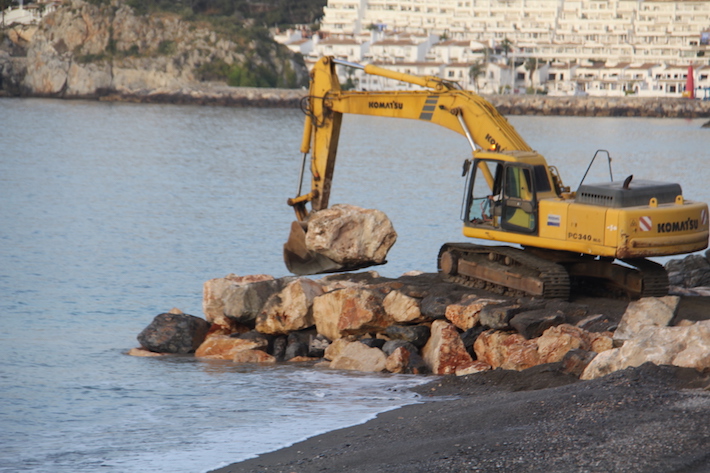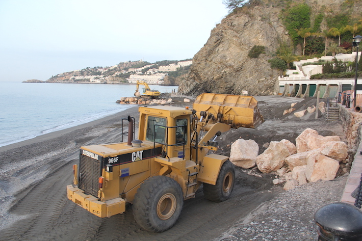 Estos trabajos arrancan tras haber concluido el espigón sumergido en la desembocadura de Río Jate, en La playa de La Herradura, que sirva de contención de la arena en Peña Parda, donde el último temporal también dejó una importante huella en la zona.