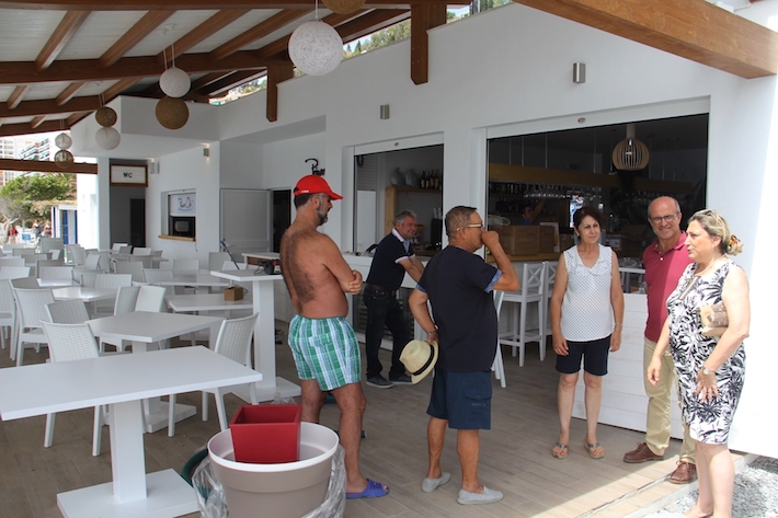 La alcaldesa, que ha estado acompañada por el concejal delegado de Playas, Luis Aragón, ha felicitado a Victoriano Antequera y María del Carmen Pintor después de visitar las nuevas instalaciones, “por el esfuerzo realizado y el buen resultado conseguido”, tras la rehabilitación integral llevada a cabo en el Chiringuito Primera Ola, situado casi en el centro de la playa de Velilla.