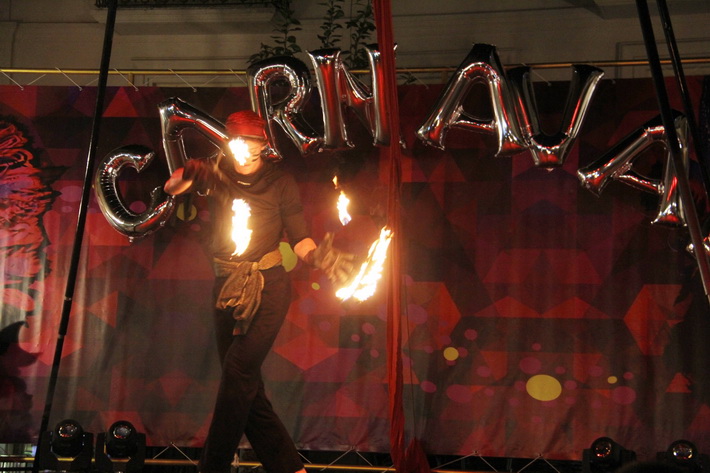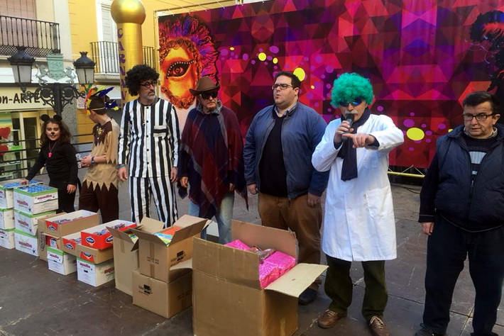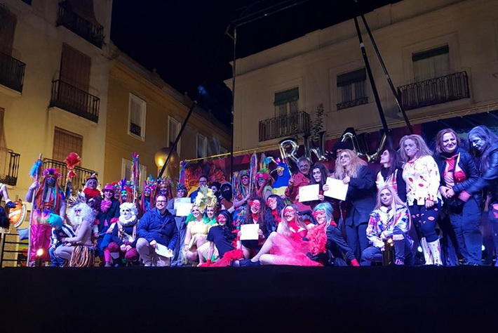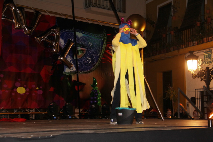 Tras el pasacalles se preparaba el concurso de disfrace y un gran show de Carnaval presentado por Elenco Teatro, donde la música, vedettes, chirigotas, Drag Queen, malabaristas, zancudos animaron la fiesta y de paso se iba colando sobre el escenario los disfraces individuales o de grupos que optaban al Concurso de Disfraces, que coordinó el técnico del Área de Fiestas, Alberto García Gilabert. El acto, presentado por Antonio, del grupo Elenco, con la ayuda de su “pinganillo” Miriam Laborda.