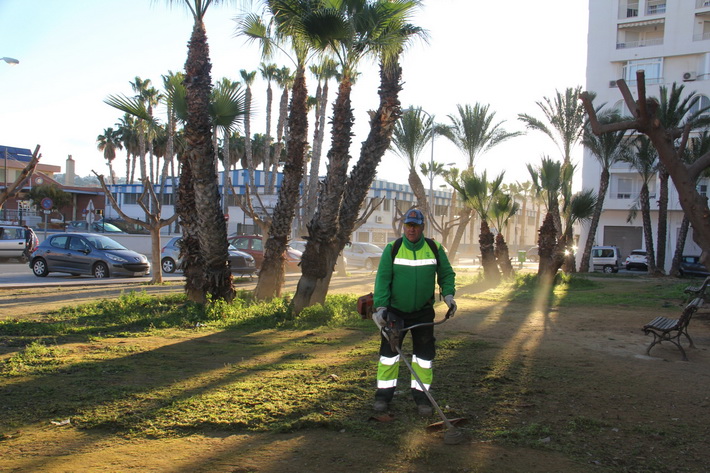 El Área de Jardines y Medio Ambiente del Ayuntamiento de Almuñécar sigue adelante con la campaña de poda arboles y limpieza de palmeras en las calles y parques del municipio sexitano.