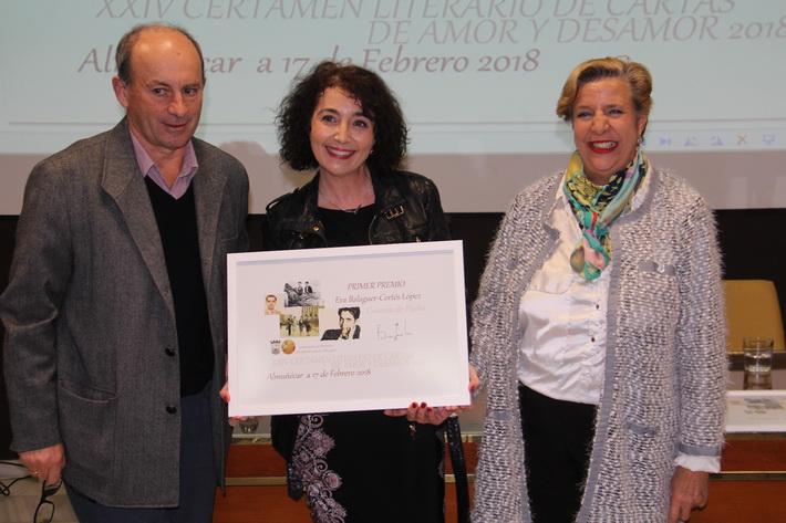 La zaragozana, Eva Balaguer Cortés López (1965) se hizo anoche con el primer premio del XXIV Certamen de Cartas de Amor y Desamor de Almuñécar 2018, dotado con 800 euros, diploma, así como alojamiento para dos personas en la Residencia Palacete del Corregidor de Almuñécar y una cena para dos personas, por la carta “Corazón de piedra” presentada bajo el pseudónimo “Centauro”.