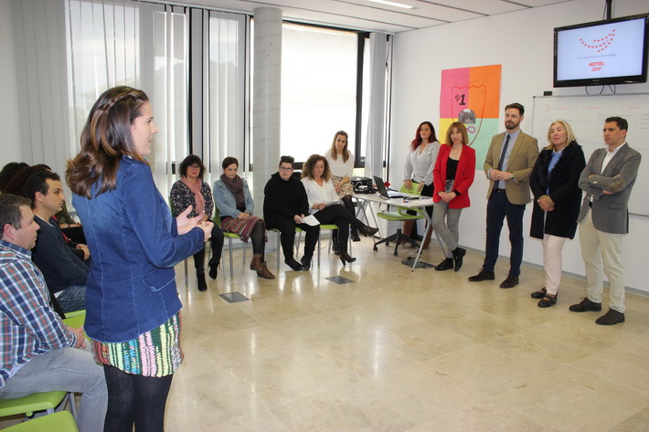 El delegado de Economía, Innovación, Ciencia y Empleo de la Junta de Andalucía, Juan José Arcos; la teniente de alcalde responsable de las áreas de Formación y Empleo del Ayuntamiento de Motril, María Ángeles Escámez; el representante de la Fundación Telefónica, Alejandro Pérez-Hidalgo; y la portavoz de la Fundación Santa María la Real, Nuria Campón, han visitado a las personas desempleadas que desde noviembre integran la Lanzadera de Empleo de Motril, puesta en marcha por las cuatro entidades con cofinanciación del Fondo Social Europeo.