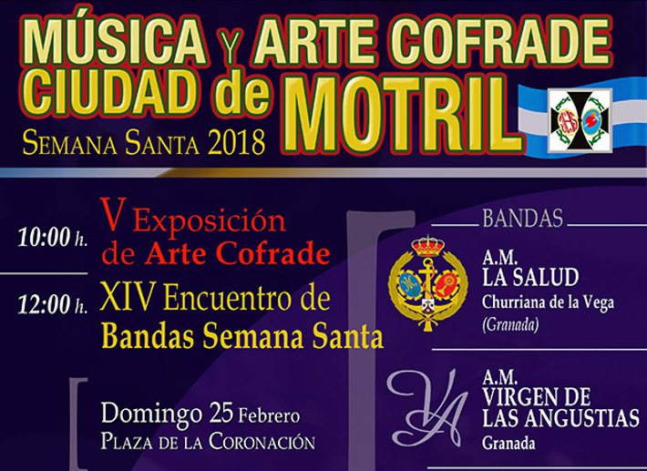 El próximo domingo 25 de febrero tendrá lugar el XIV Encuentro de Bandas de Semana Santa y la V Exposición de Arte Cofrade donde participarán agrupación musicales de Granada, Calahonda y Churriana de la Vega.