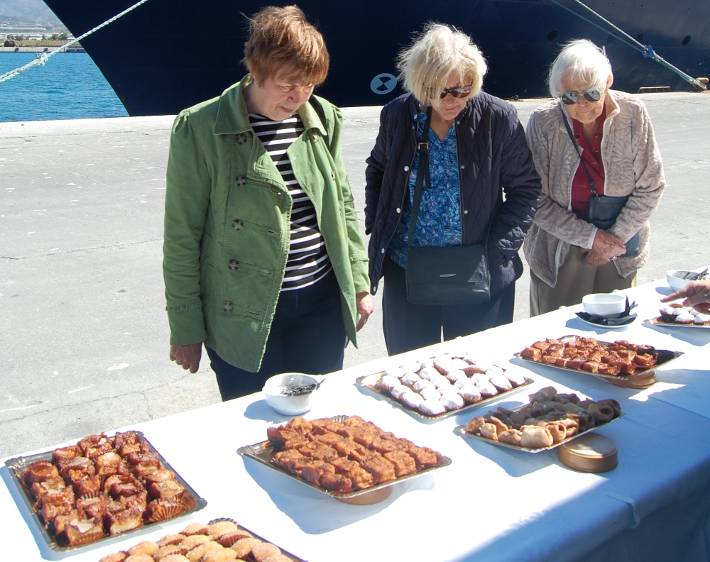 Para ambos, la Autoridad Portuaria e instituciones públicas locales y provinciales han organizado a pie de muelle actividades promocionales del destino, como una degustación de productos típicos de Semana Santa, esta mañana, y un espectáculo flamenco, en horario de tarde.