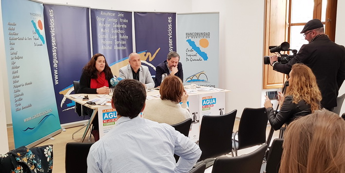 Por otra parte, Mª José Sánchez, delegada del ciclo integral del agua de Mancomunidad y alcaldesa de Albuñol nos comenta “nuestra Comarca está muy necesitada de agua y hemos tenido que tomar en ocasiones decisiones drásticas y es por eso que, desde la Mancomunidad a través de nuestra concesionaria, Aguas y Servicios, optimizamos todos los recursos de los que disponemos como ya ha comentado Justo. Por eso, esta campaña va dirigida en mayor medida a concienciar a la ciudadanía, desde los más pequeños a mayores y es por ello que se van a realizar campañas transversales en los centros educativos, ayuntamientos, medios de comunicación, etc, para que esta campaña llegue al último rincón de toda la comarca y que toda la población nos demos cuenta que abrir el grifo es gastar un recurso natural tan valioso”.